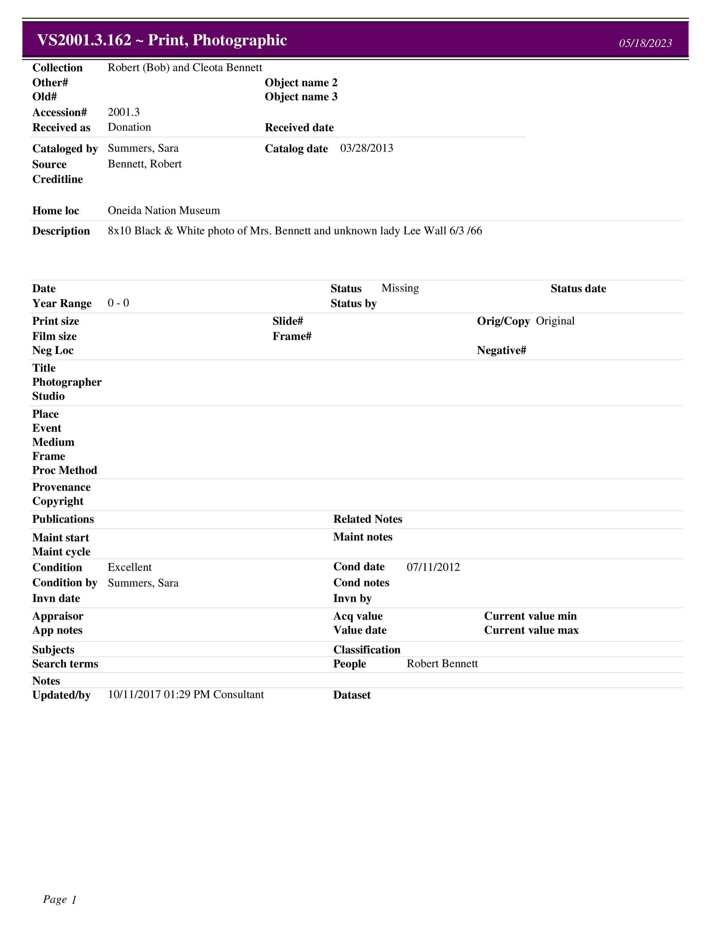 Bennett CollectionCataloged By