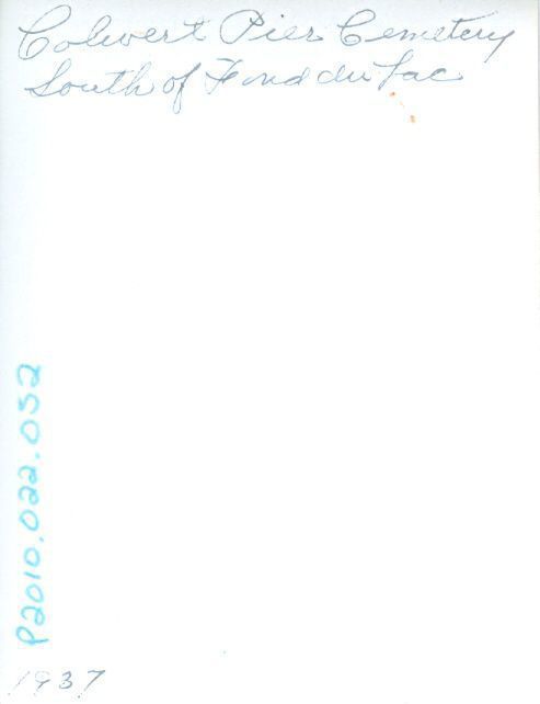 Written in black ink on the back "Colevert? Pier Cemetery, South of Fond du Lac" and in the bottom right corner "1937".Collection