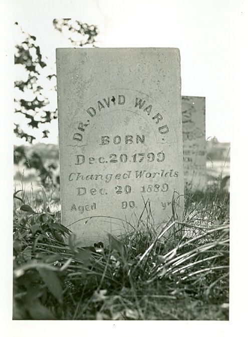 Black and white photo of a headstone for "Dr. David Ward born Dec. 20, 1799, Changed Worlds, Dec. 20, 1889, Aged 90