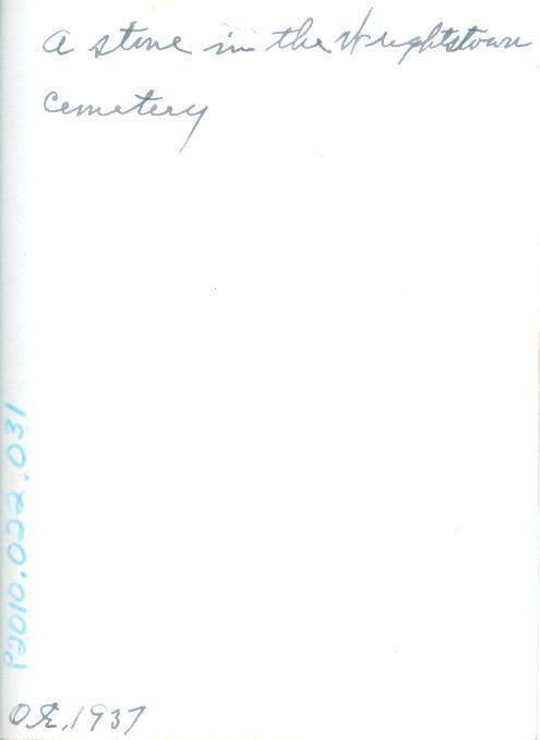yrs." Written in black ink on the back "A stone in the Washington Cemetery" at the top and "O-, 1937".Photograph Details