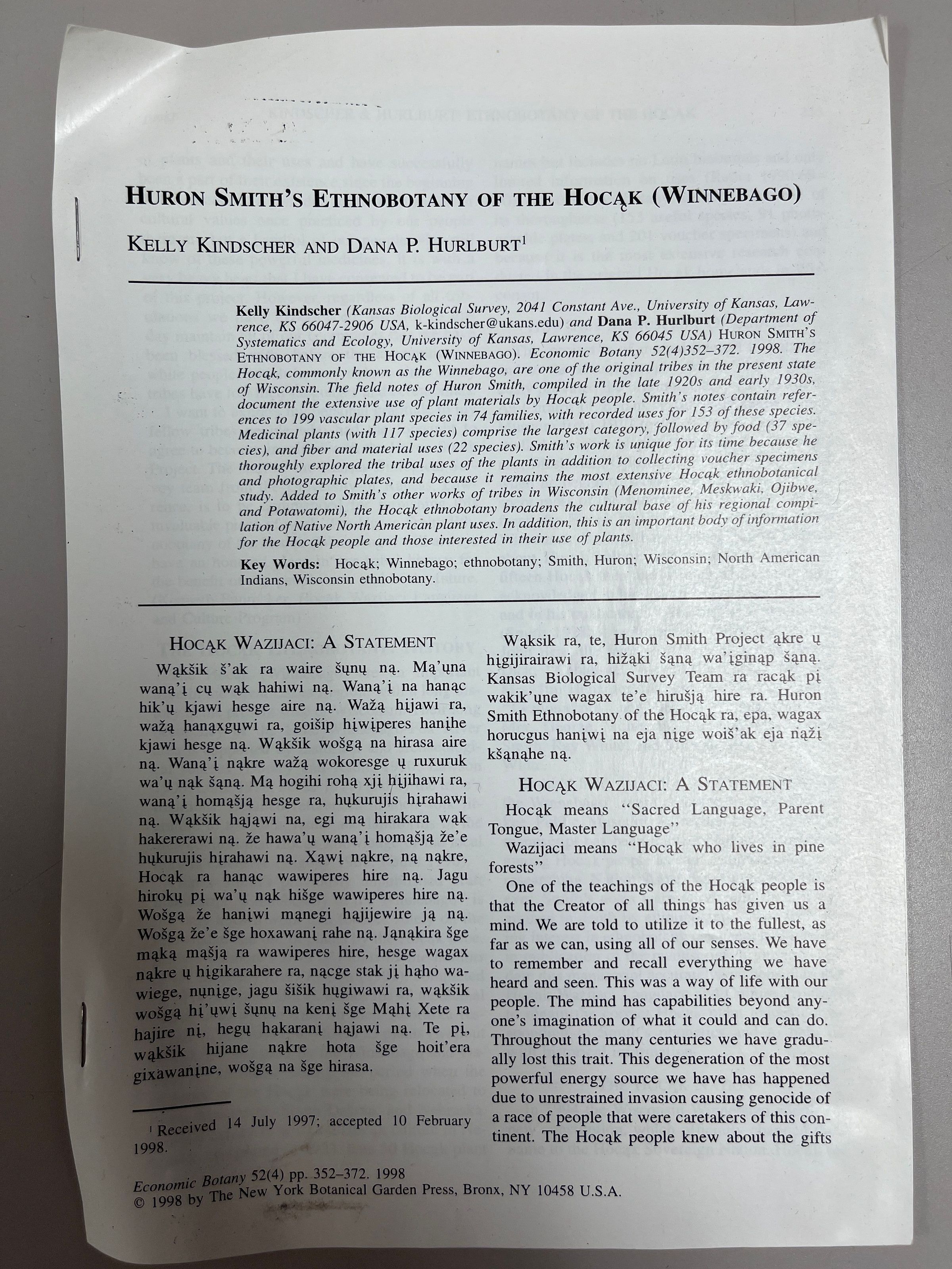 Huron Smith's Ethnobotany of the Hocak (Winnebago)Collection