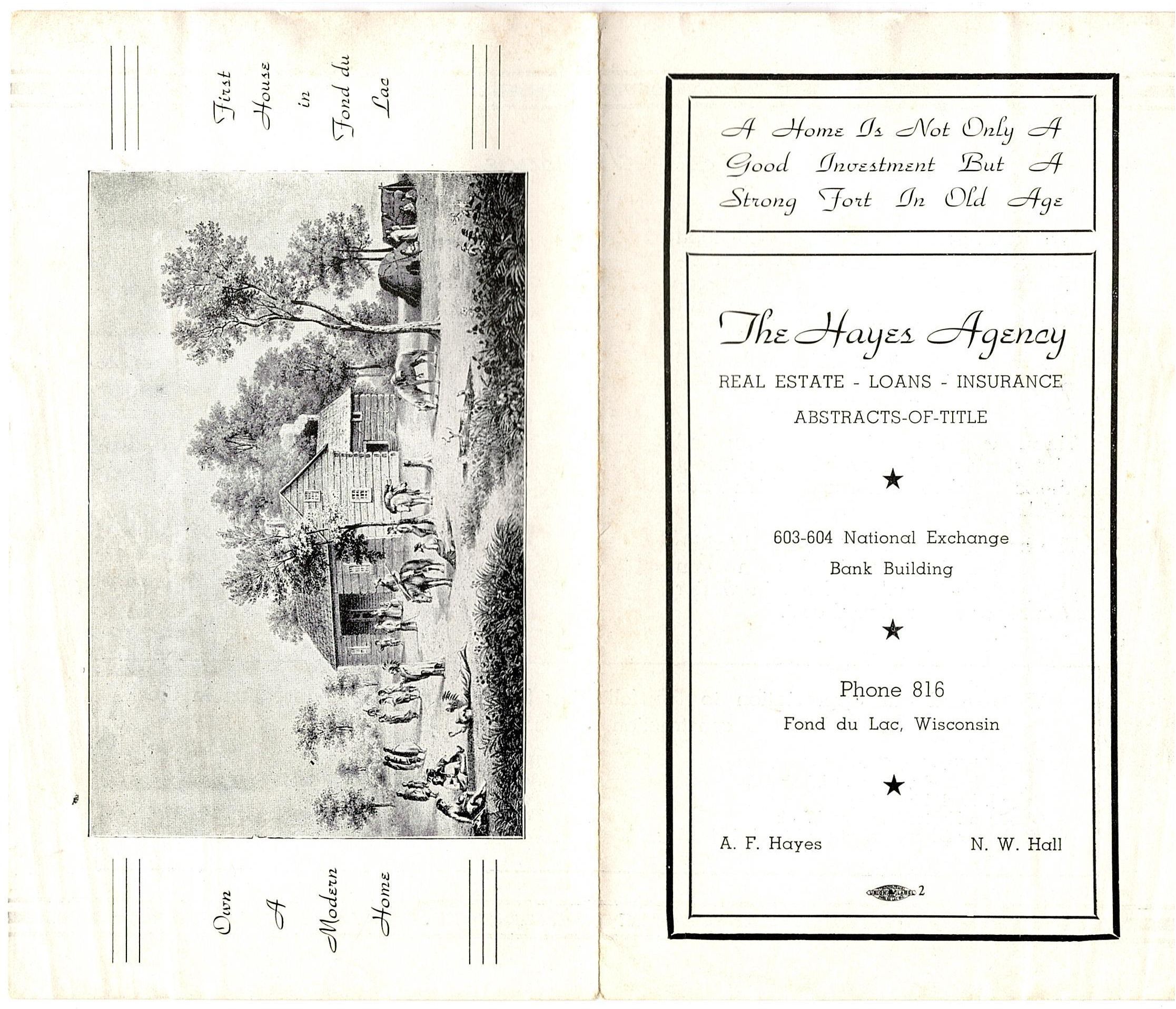 Small folded sheet of paper that is used as a flyer for the Hayes Agency. They deal with real estate, loans, insurance, and abstracts of title.Collection