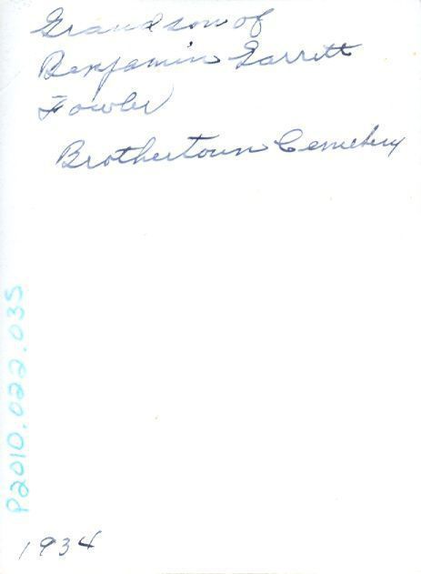 "Grandson of Benjamin Garrett Fowler, Brothertown Cemetery" and in the bottom left corner "1934"Location