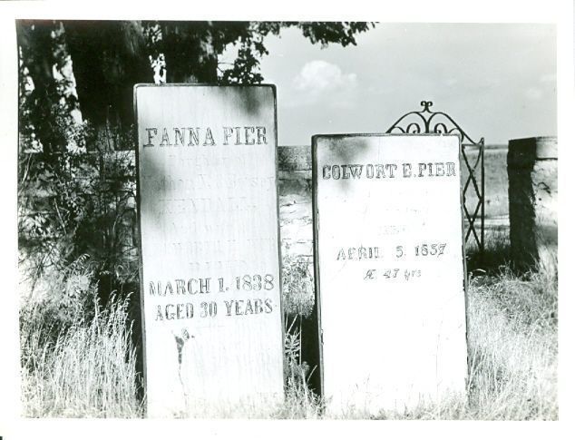 Black and white photo of two headstones for Fanna Pier and Colwort E. Pier. The photo is hard to read, unsure what each