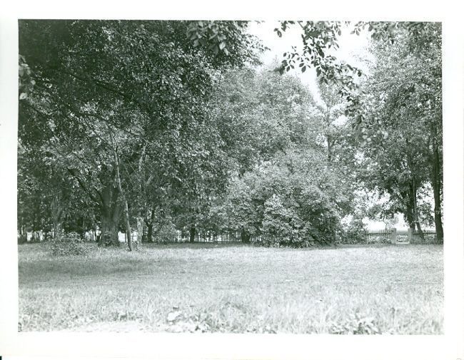 Black and white photograph of a grove of trees. Written in black ink on the back "The lawn of the Grignon Home. 1936-O.E."Collection