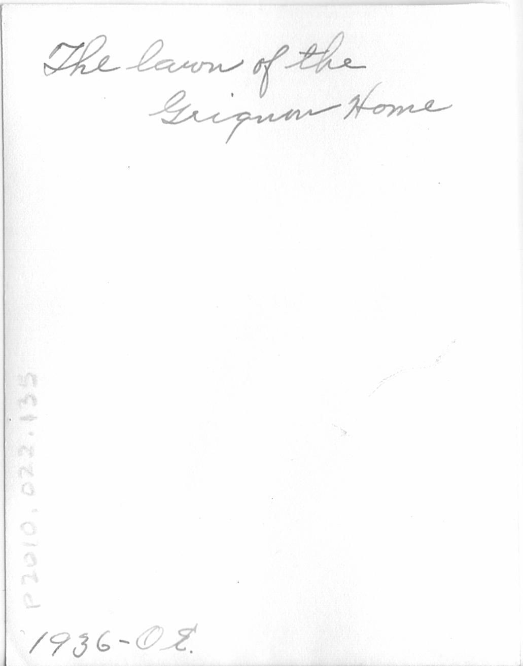 "The lawn of the Grignon Home. 1936-O.E."Inventory