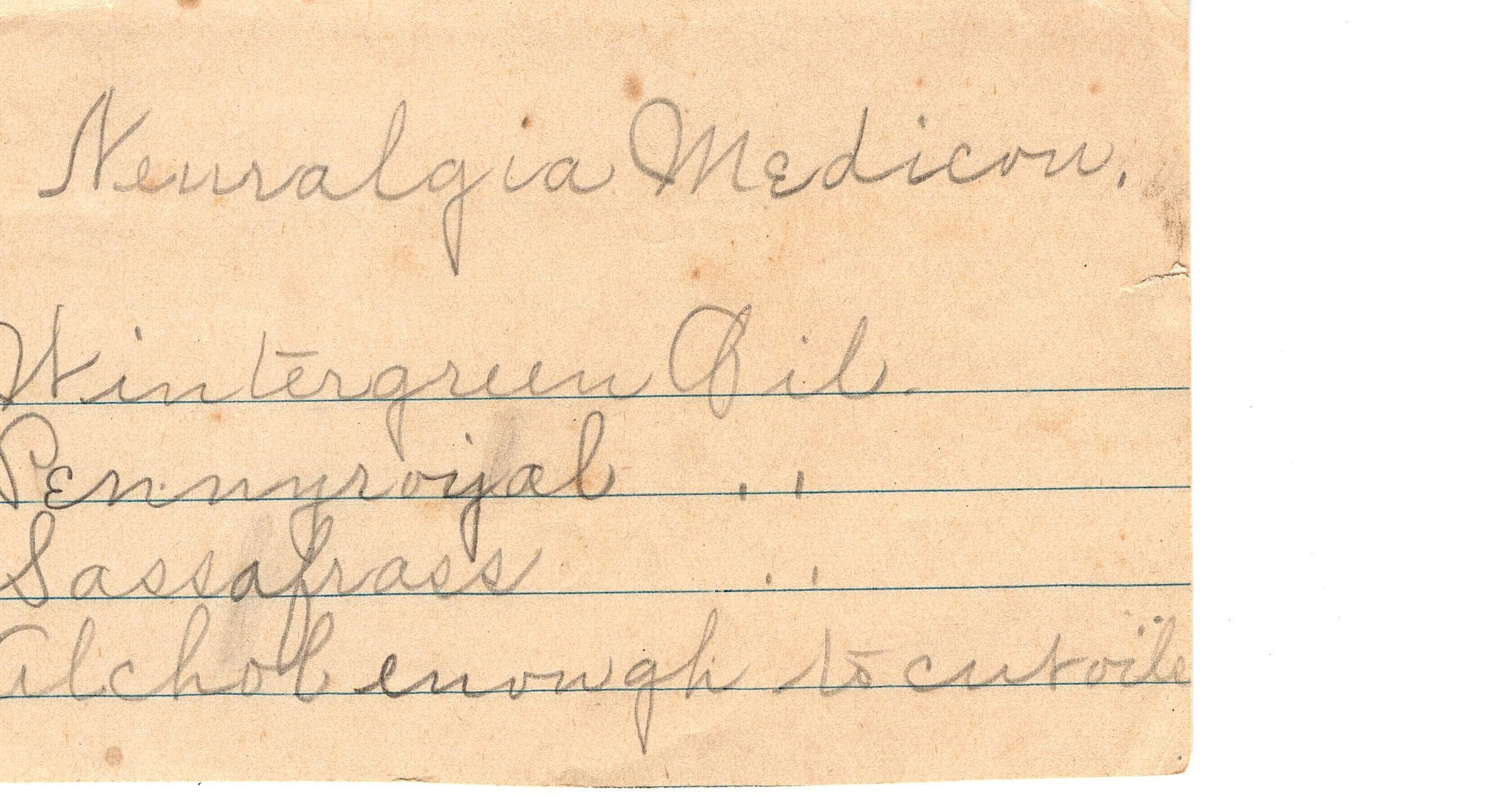 What looks to be a medicinal recipe on a 1/4 sheet of paper.