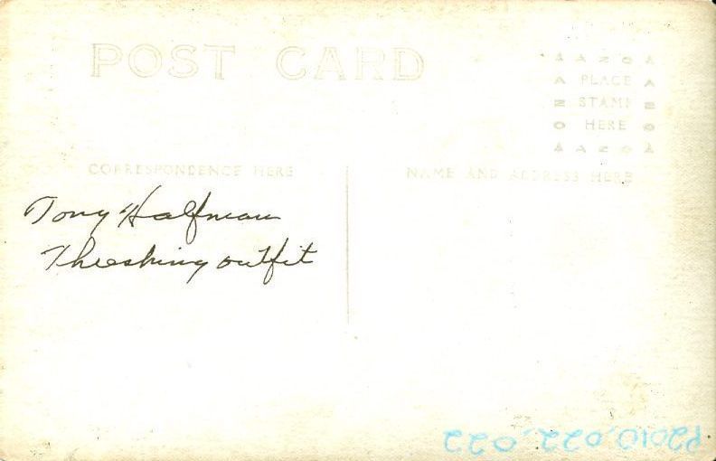 Written on the back in black ink is "Tony Halfman Threshing outfit"Collection
