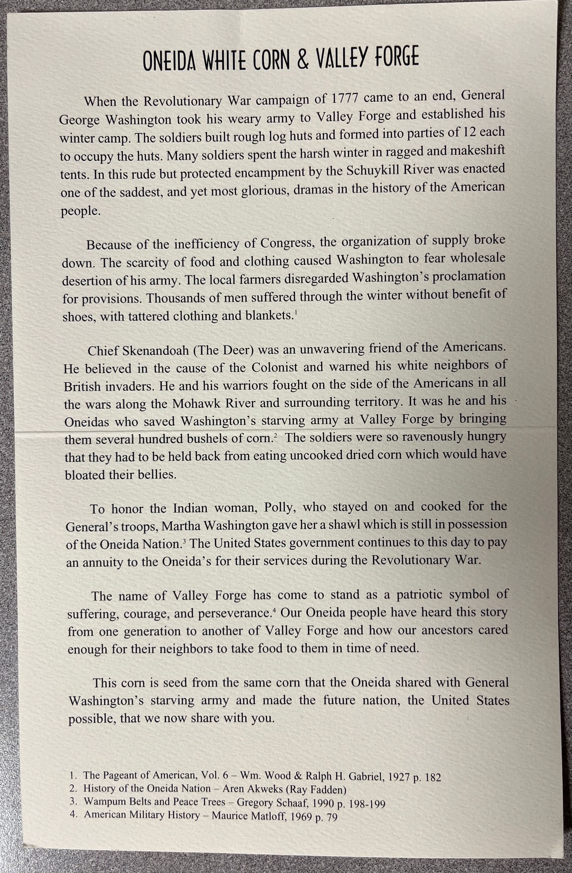 Oneida White Corn & Valley ForgeEntry/Object ID