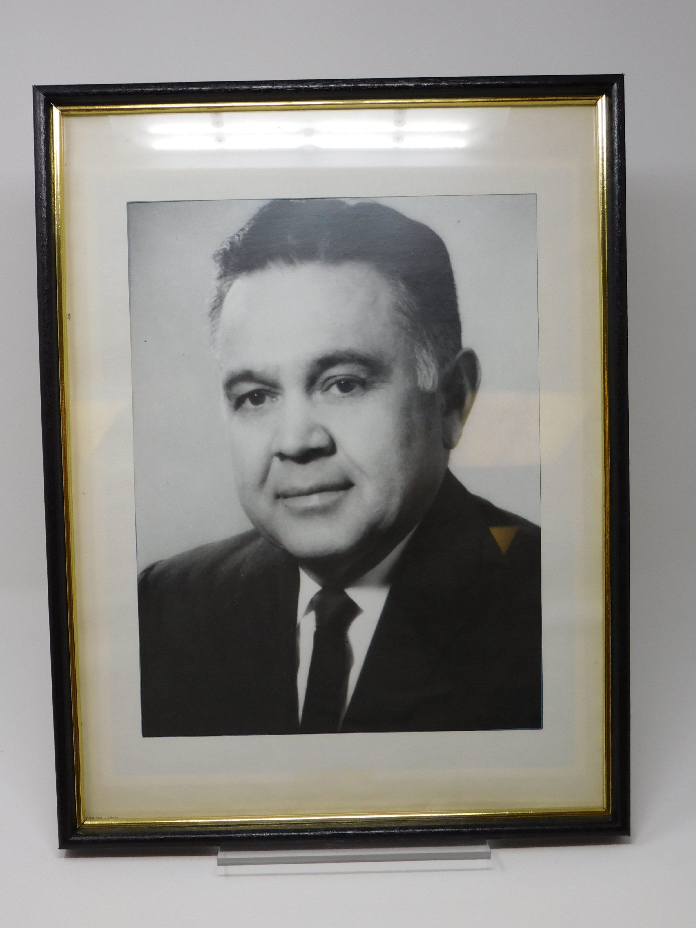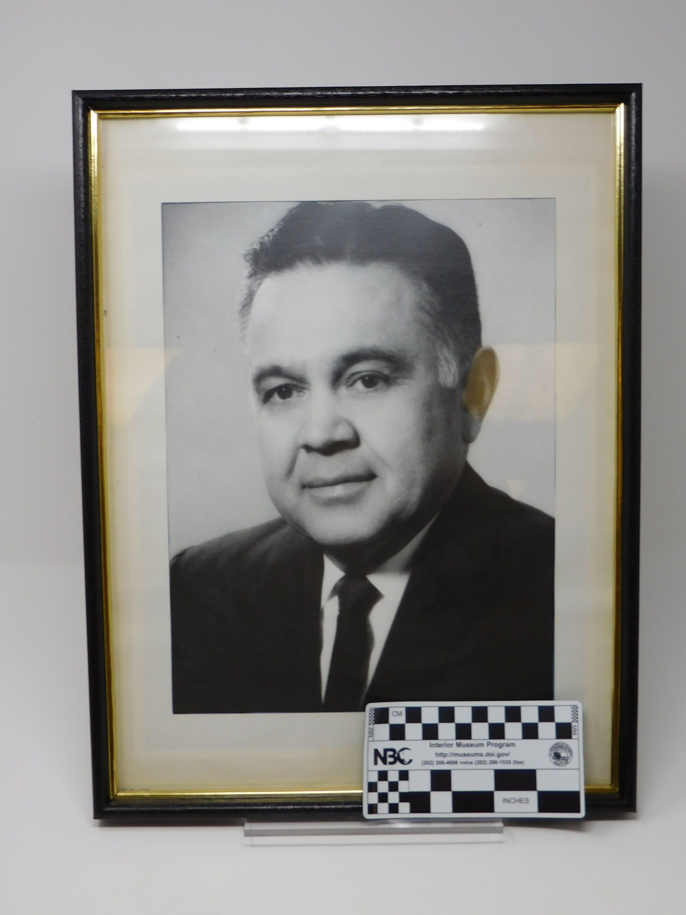 Framed black and white photograph of Robert Bennett wearing a suit and tie. Headshot of Robert BennettPhotograph Details