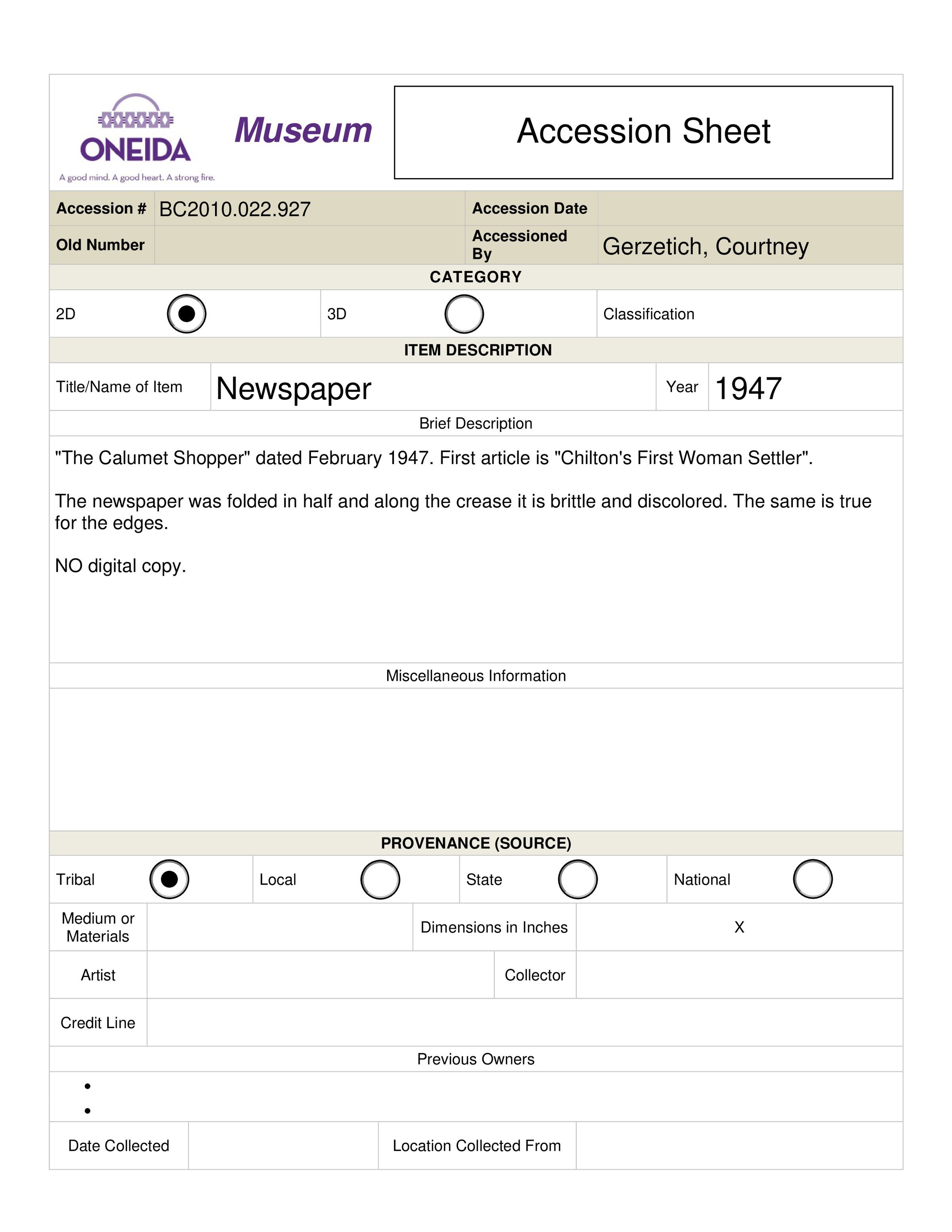 Brothertown Indian Nation holds physical copies and copyright; Contact Brothertown for reproductions and publishingCreated By
