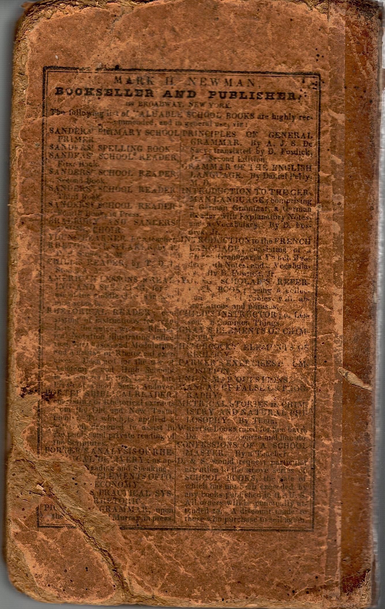 Sander's Series. The School Reader. Third Book. By Charles W. Sanders, Author of Spelling Book, ETc. Fiftieth Edition. New York: Published by Mark H. Newman & Co., No. 199 Broadway. Cincinnati:-William H. Moore & Co. 1846.