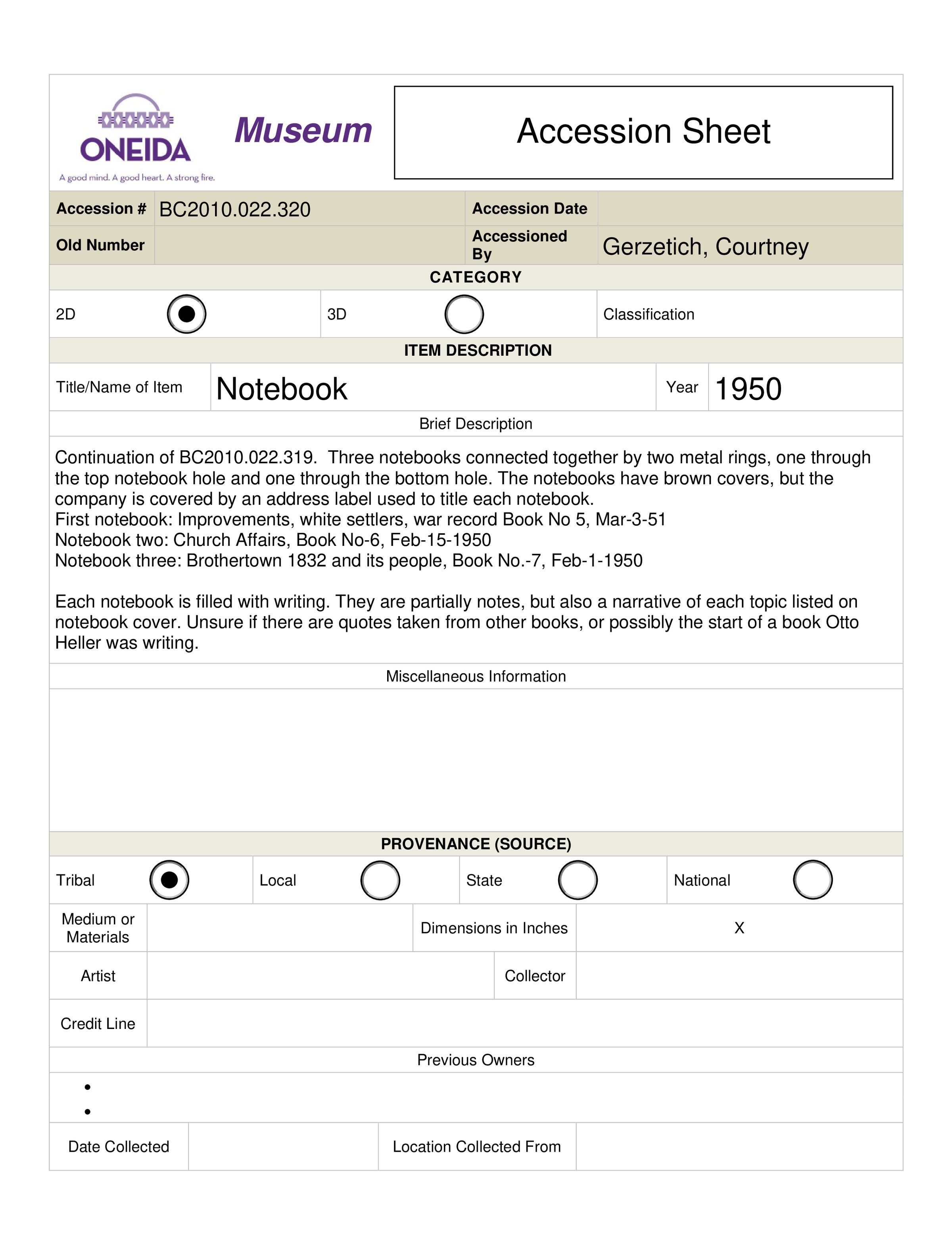 Brothertown CollectionCataloged By