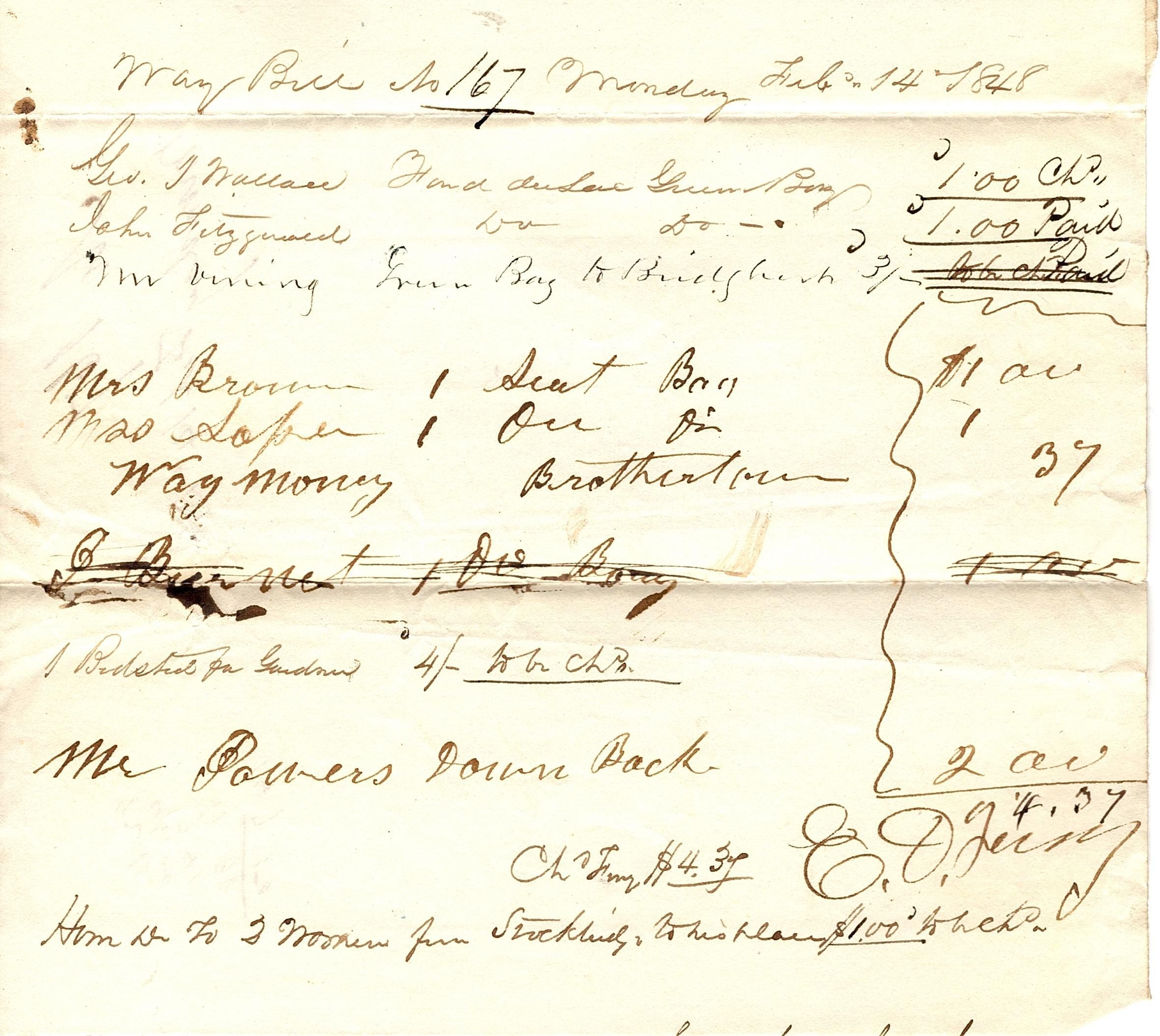 Way Bill Feb 14, 1848Entry/Object ID