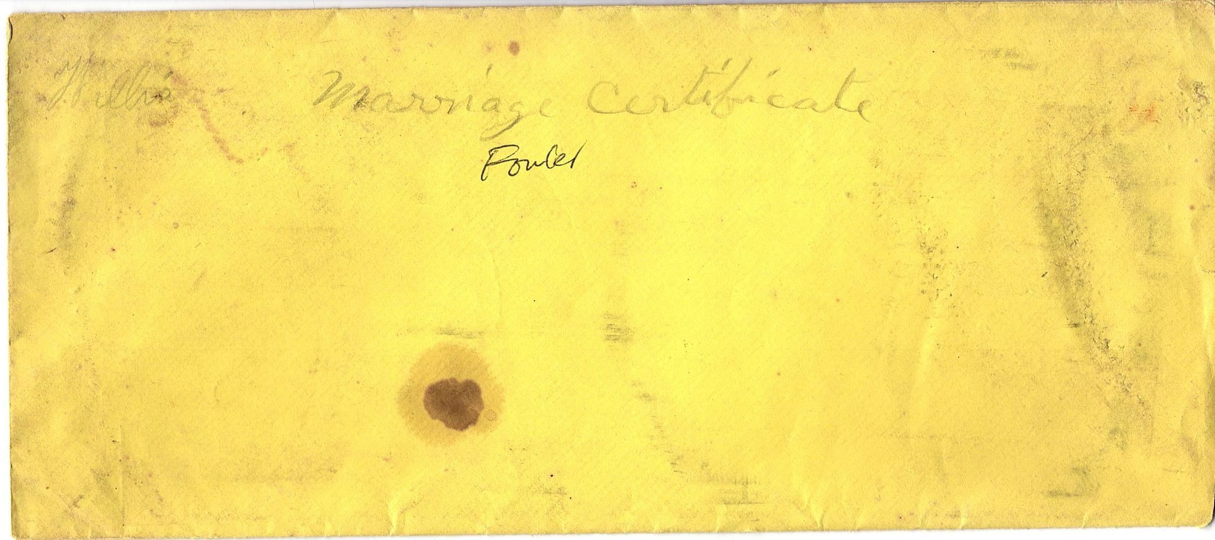 BC2010.022.706B is the yellow envelope it was in that has "Marriage Certificate" in pencil and "Fowler" in black ink.Collection
