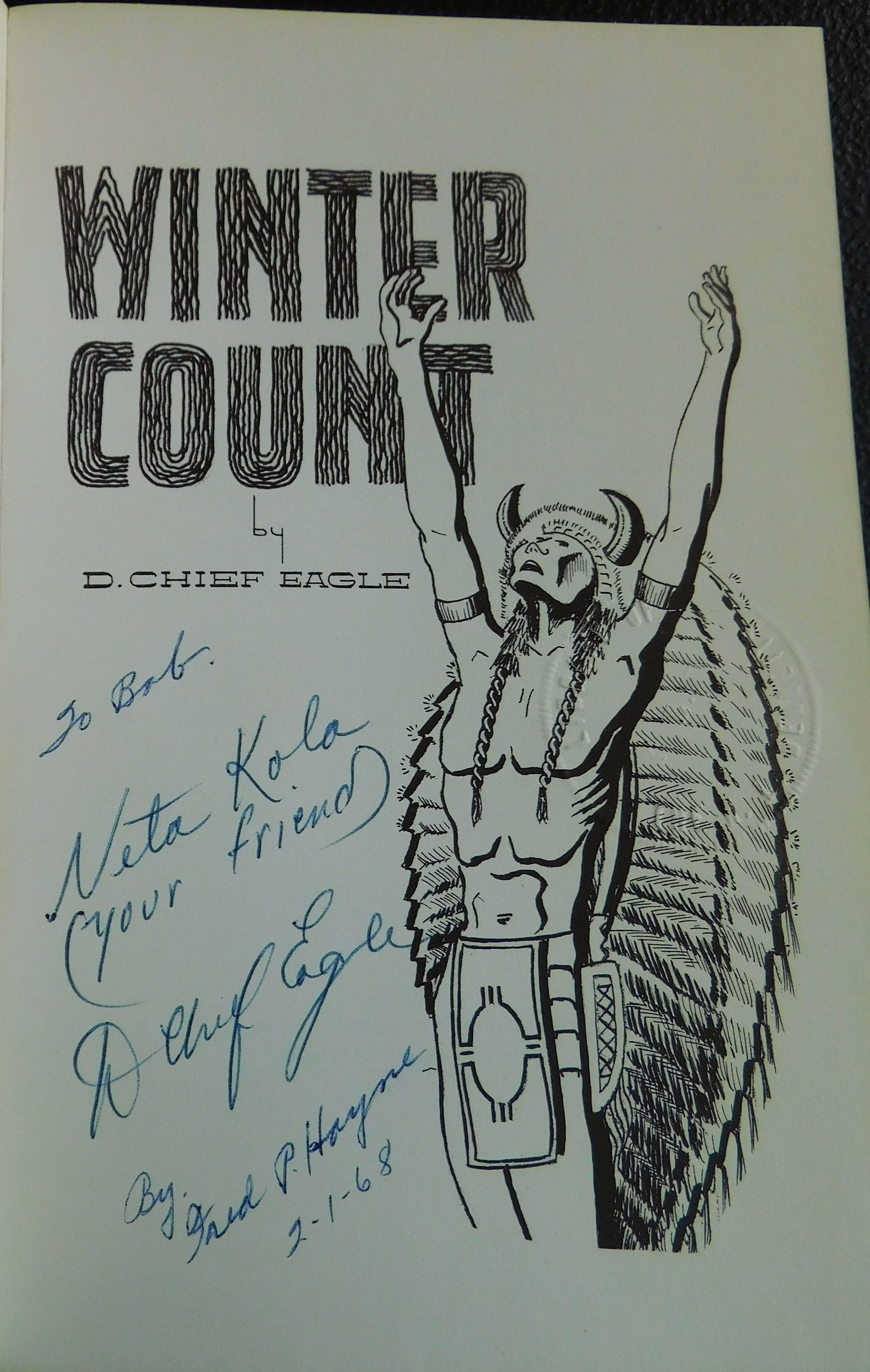 To Bob, Neta Kola (your friend) D. Chief Eagle. By Fred P. Hayne 2-1-68.Other Names and Numbers