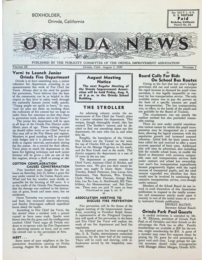 08/01/1939 - News published by the Orinda AssociationDescription
