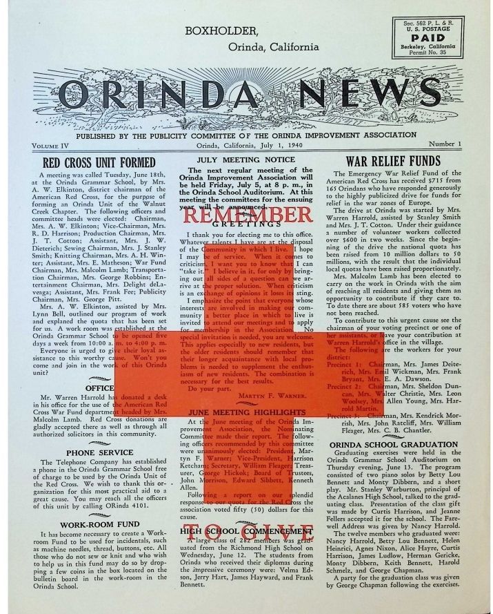 07/01/1940 - News published by the Orinda AssociationDescription