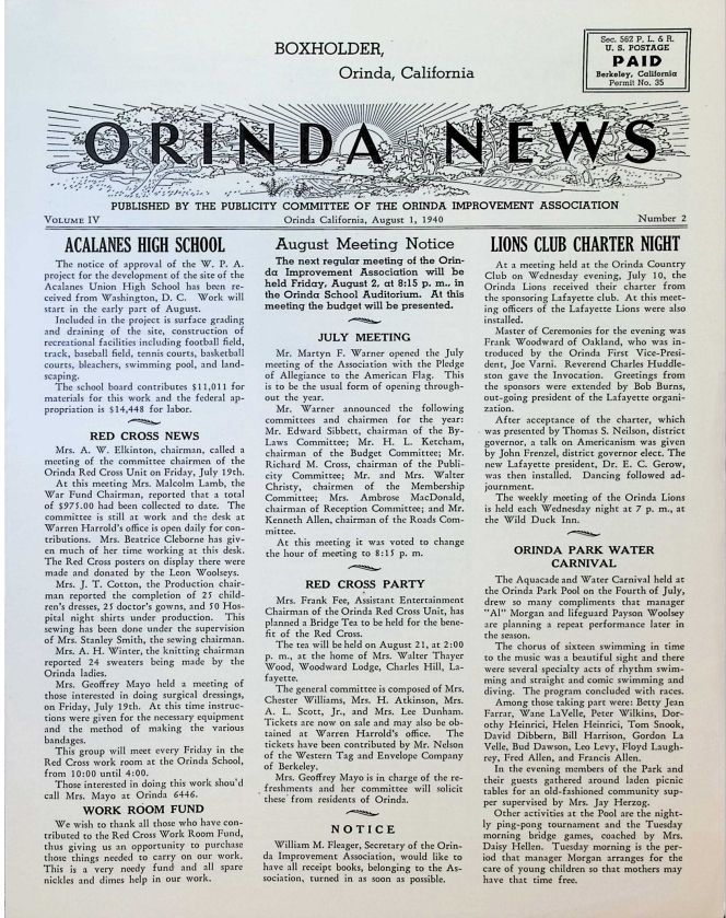 08/01/1940 - News published by the Orinda AssociationDescription