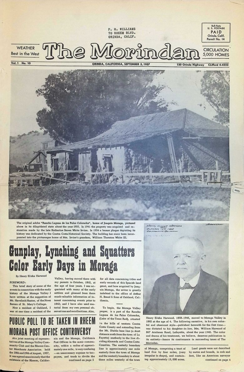 The Morindan was a weekly community newspaper published in Orinda, California in 1957, serving the growing suburban communities of Orinda and Moraga with local news, business advertisements, social announcements, and coverage of civic issues including the town's incorporation discussions.Context