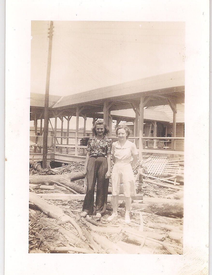 2 Ladies standing on debris