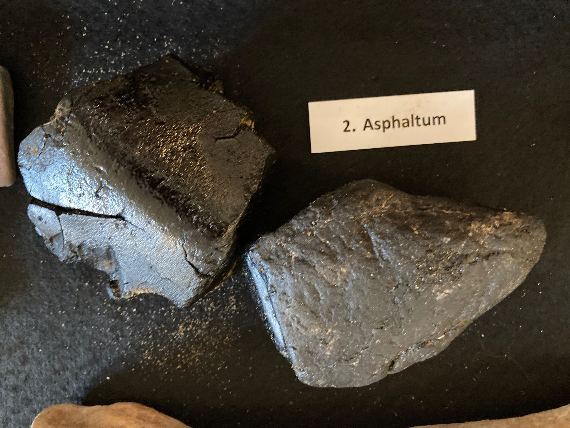 Asphaltum was formed by petroleum oil from natural seeps, reacting long term with sea water. Often found on Texas beaches. Used to glue arrows, dart points, tomahawks, and pots.