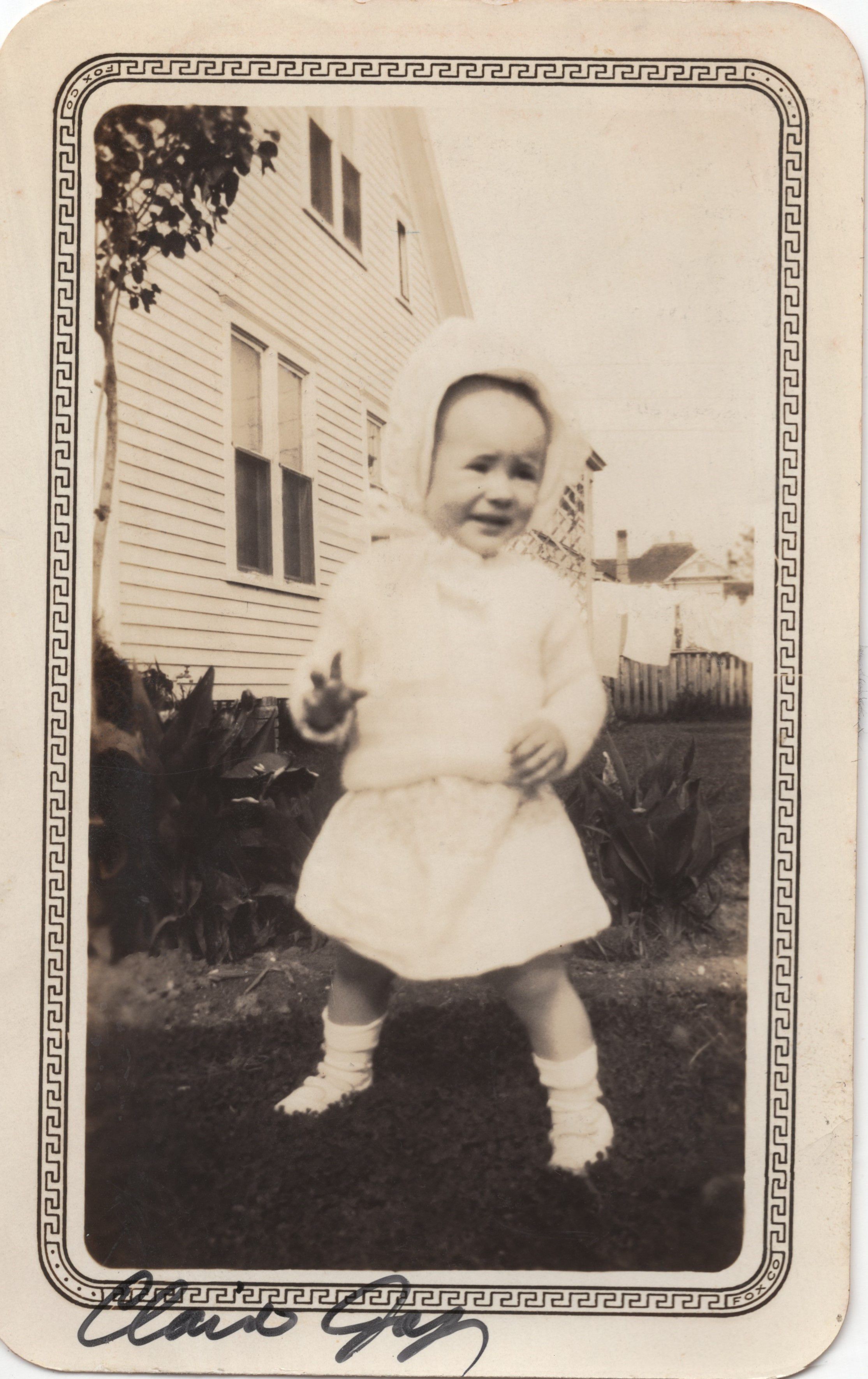 a baby Claire Joy playing in the garden