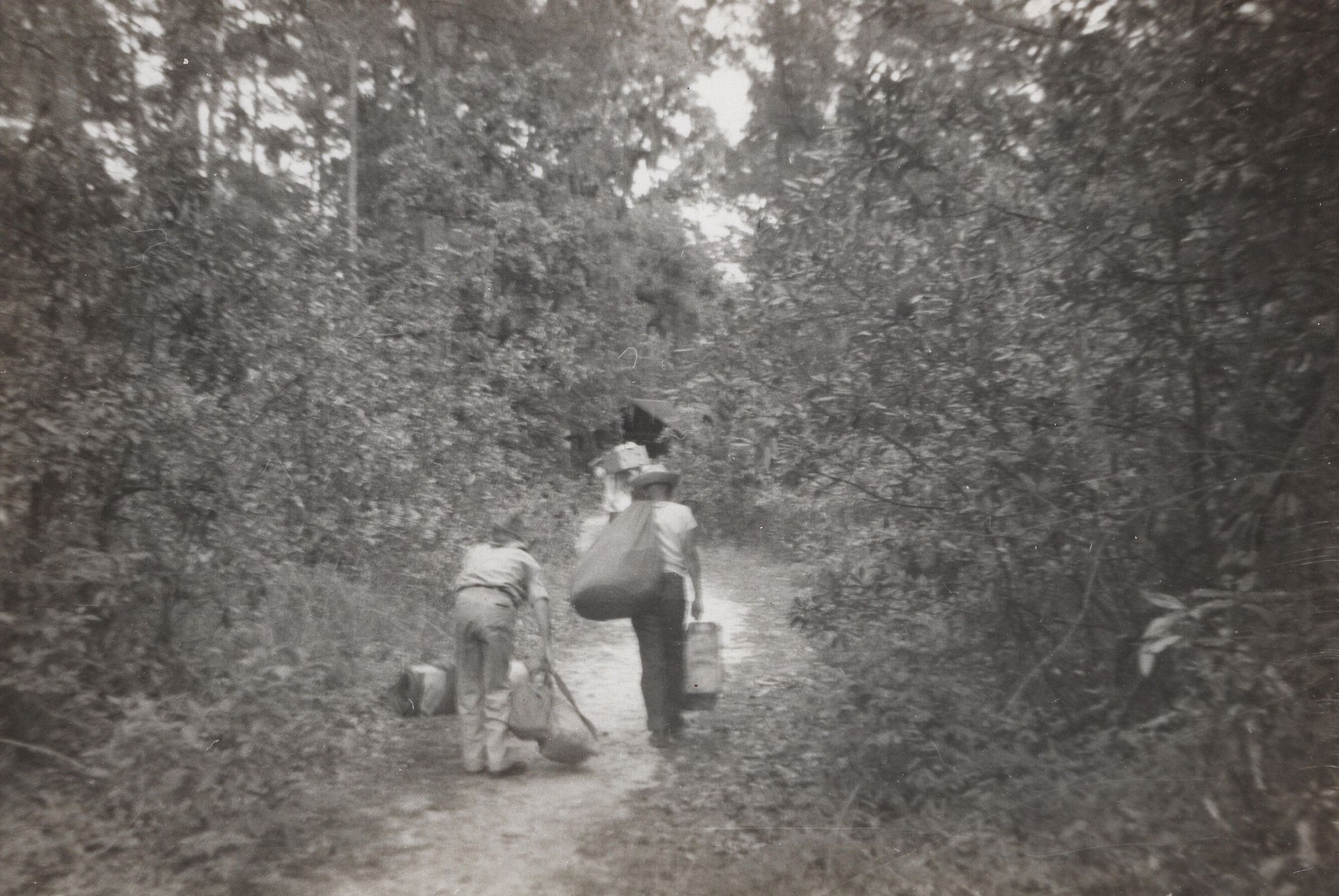 Boys carrying camping gear