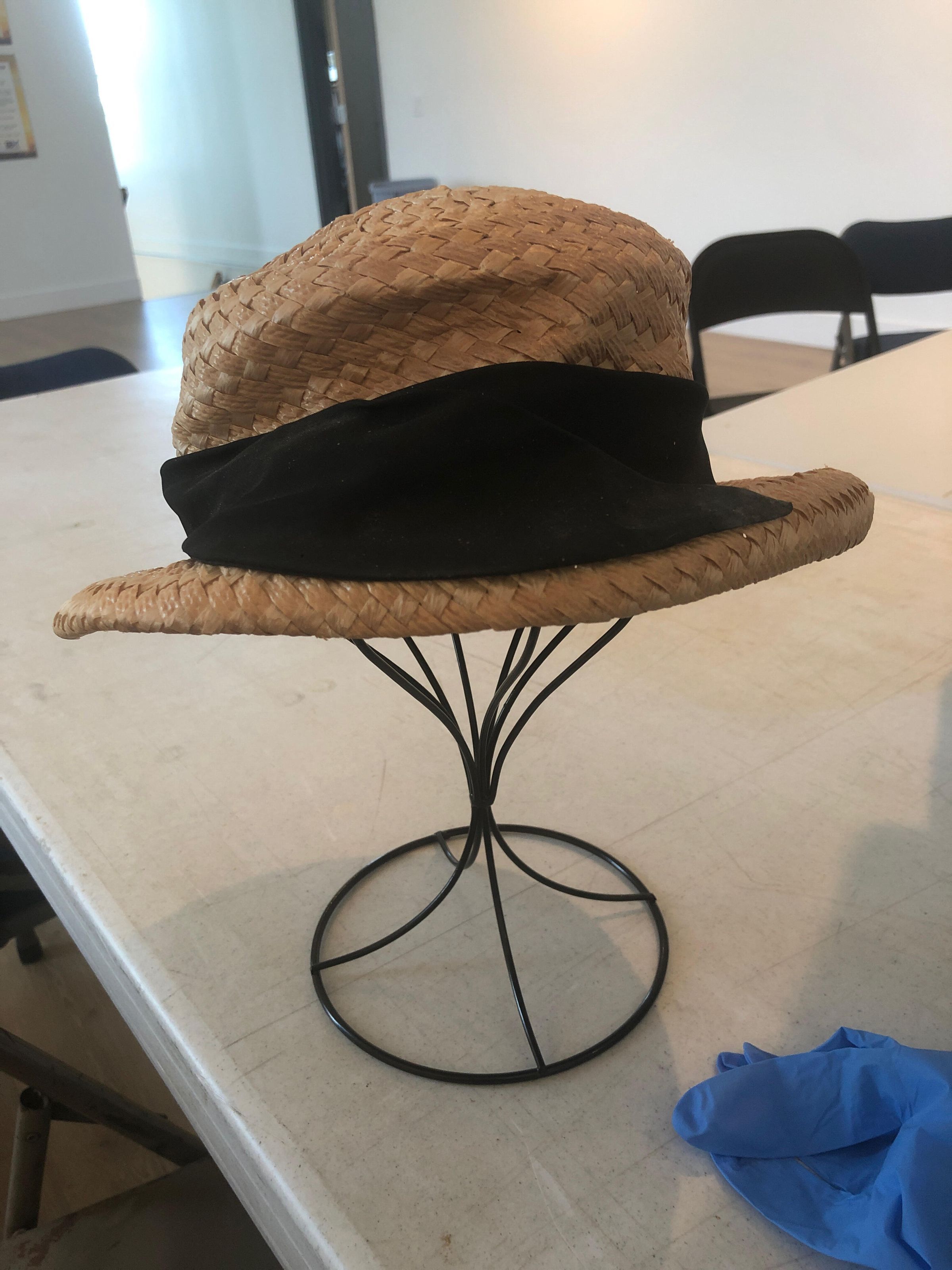 Straw hat with a large black ribbon