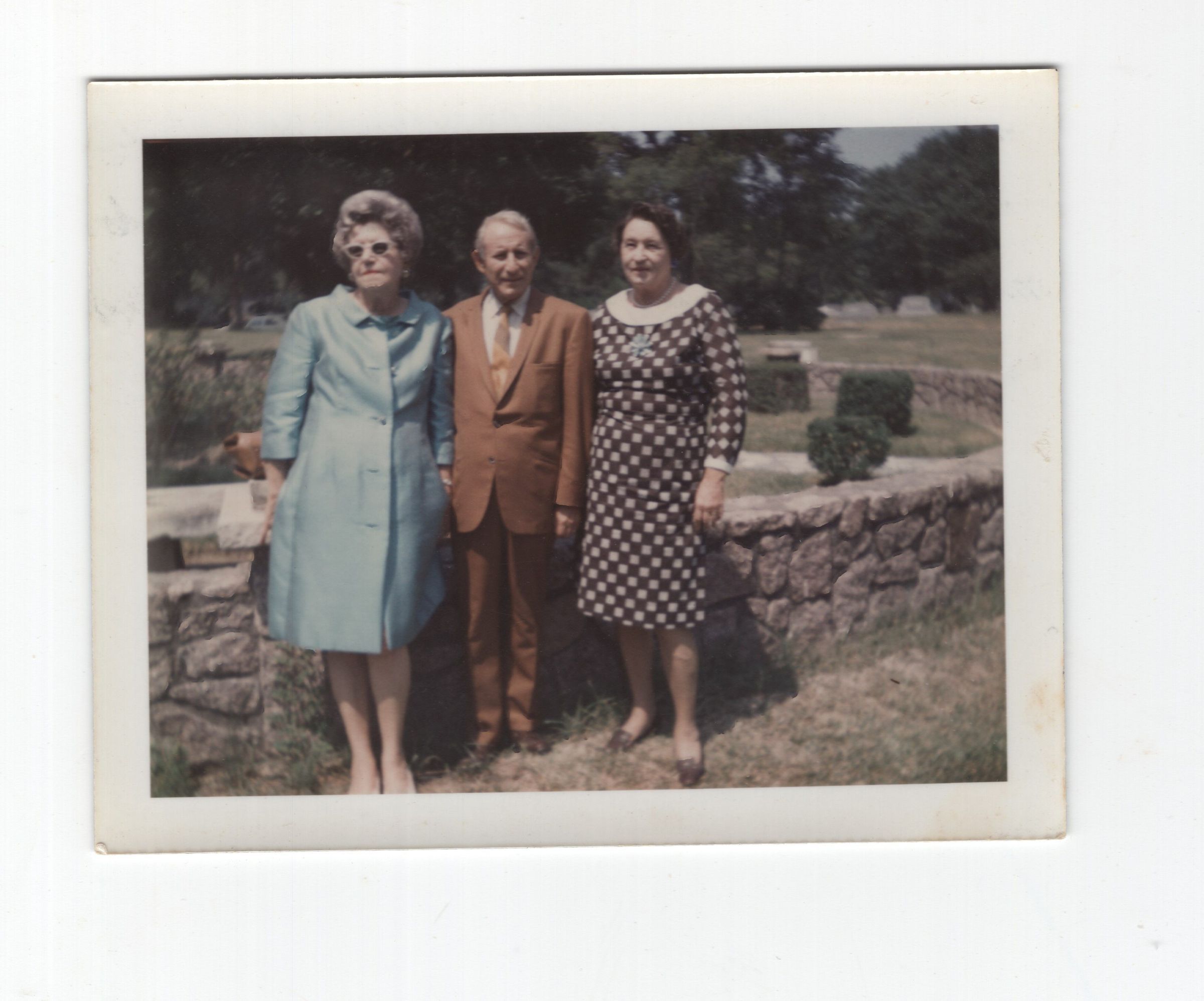 Two older women and an older man posing in their sunday best