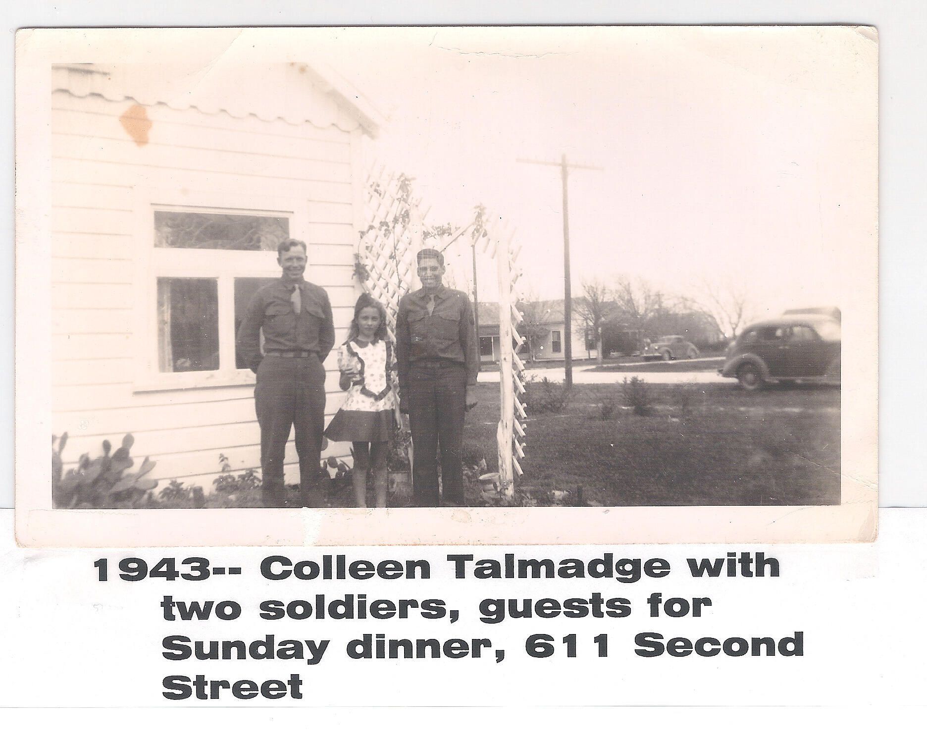 Colleen Tallmadge with two soldiers for Sunday dinner, 611 Second Street.Collection