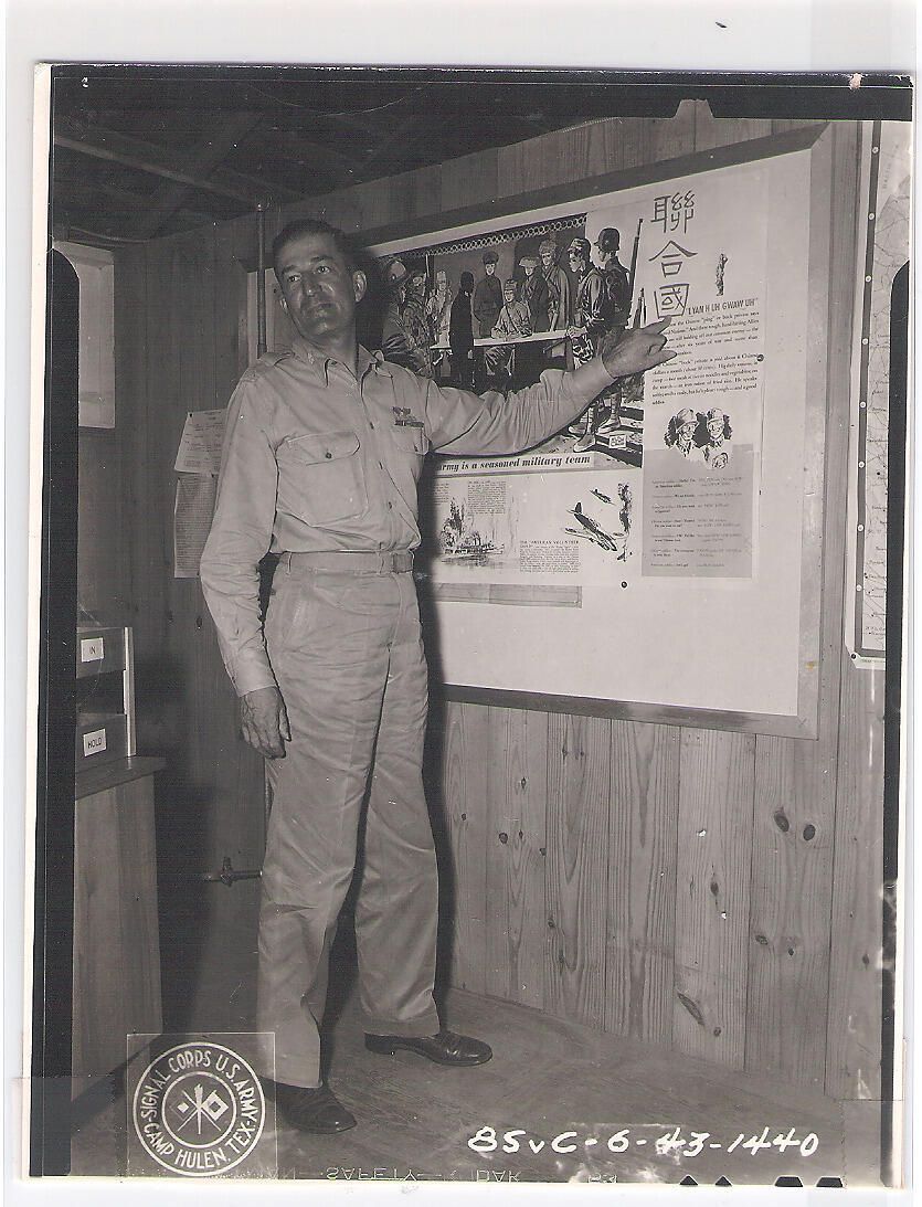 1943 Lt. Col. Harry S. Aldrich, Commanding Officer of the 58th Group, Camp Hulen, Texas has no illusions about the strength of our Japanese adversary. As a Military Observer for the League of Nations, he witnessed their conquest of Manchuria in 1932; as Liaison Officer for General Joseph Stillwel, he fought against them in Burma a decade later. Photographer, S/Sgt. Stanley L. WilkinsonCollection