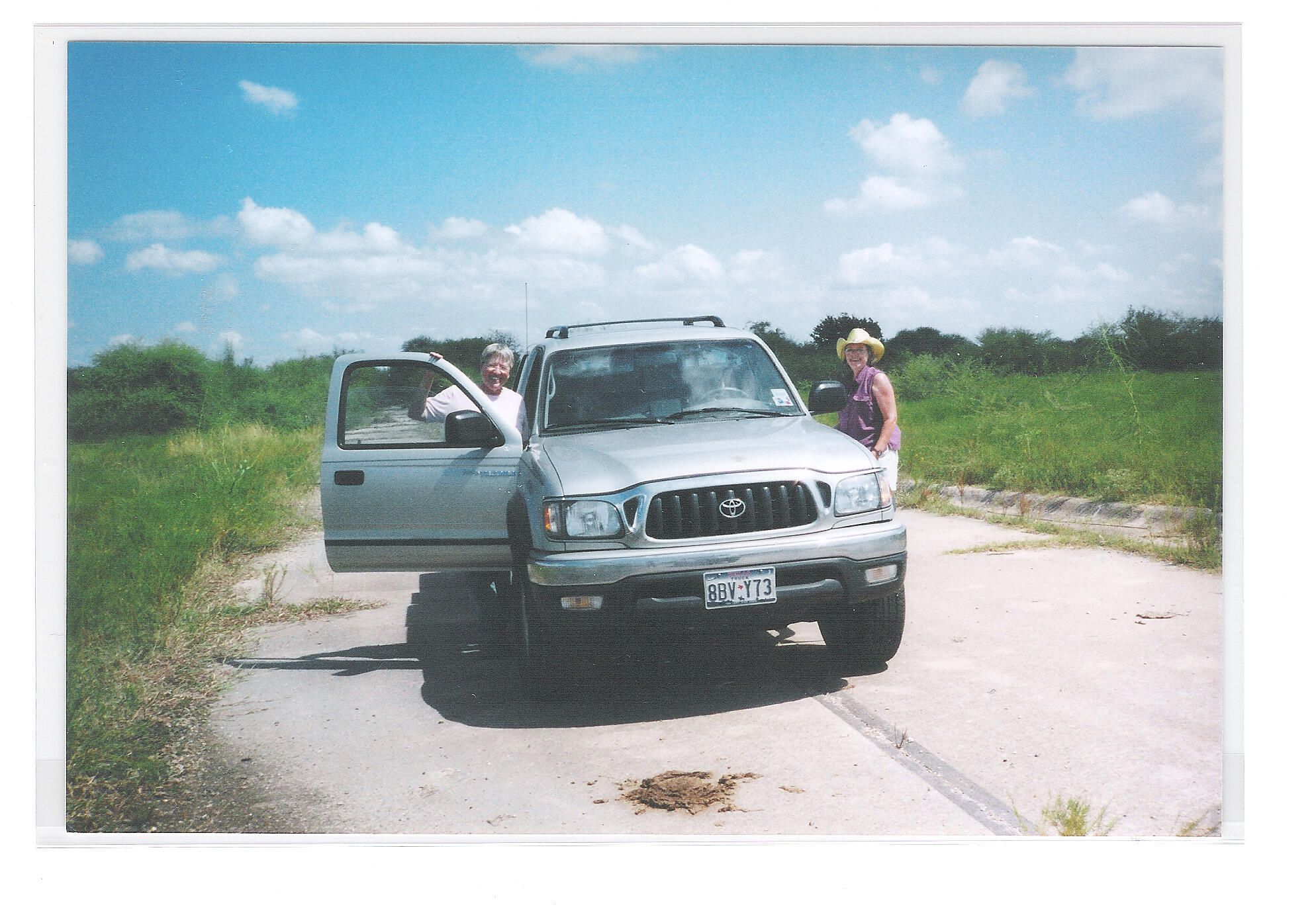 Connie Moberly and Sandra Rogers on a road at the former Camp Hulen site.