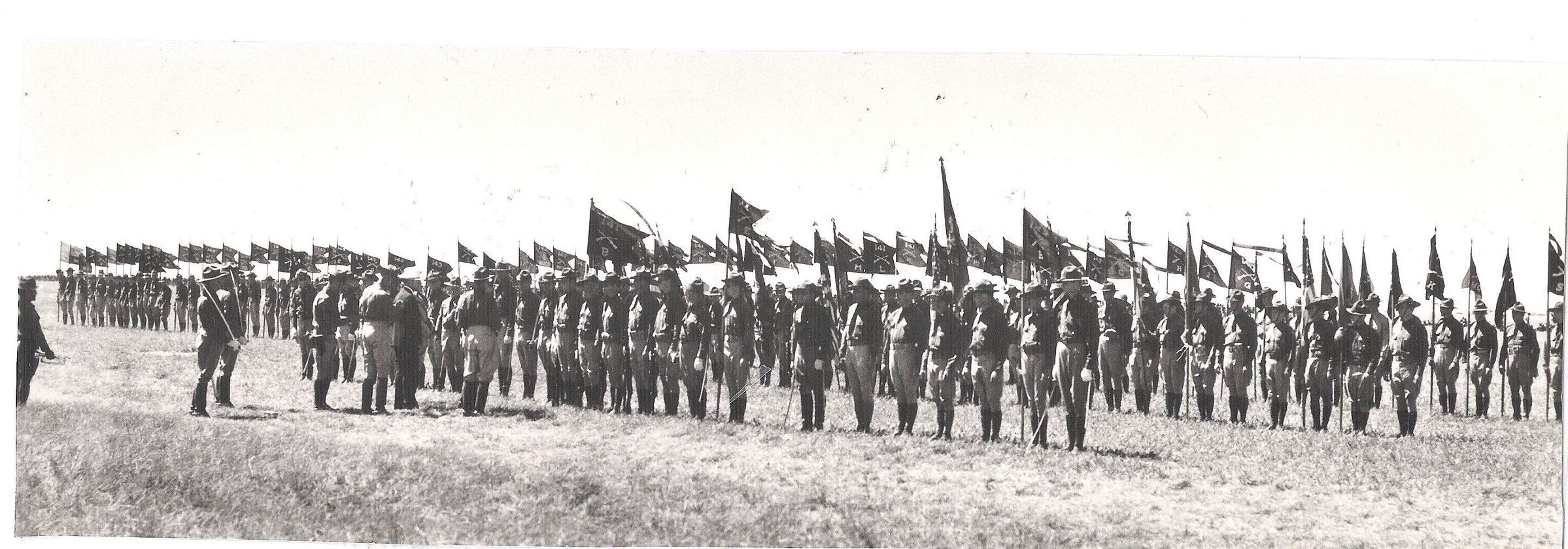 Governor James V. Allred inspecting messed colors at 1936 final review of the 36th Division.