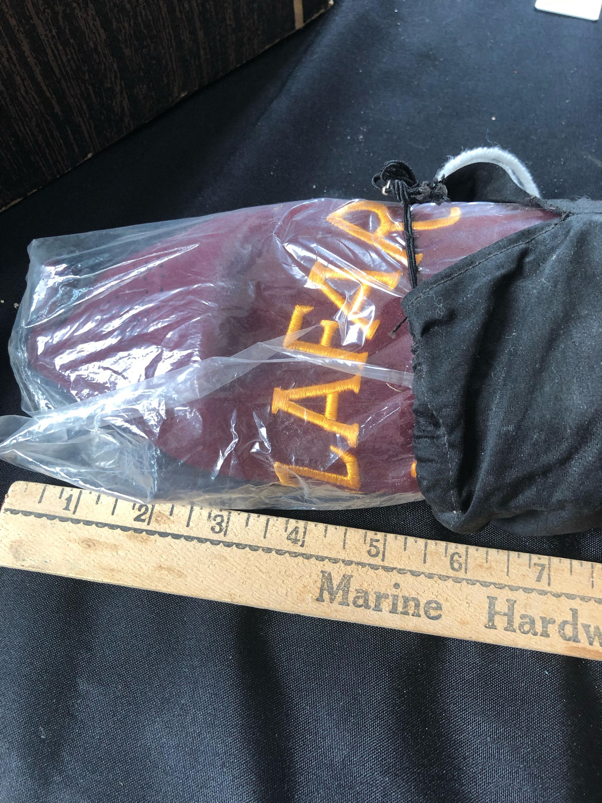 I am unable to get it fully out of the bag but it appears to be a red cap of some sort inside of a black drawstring bag