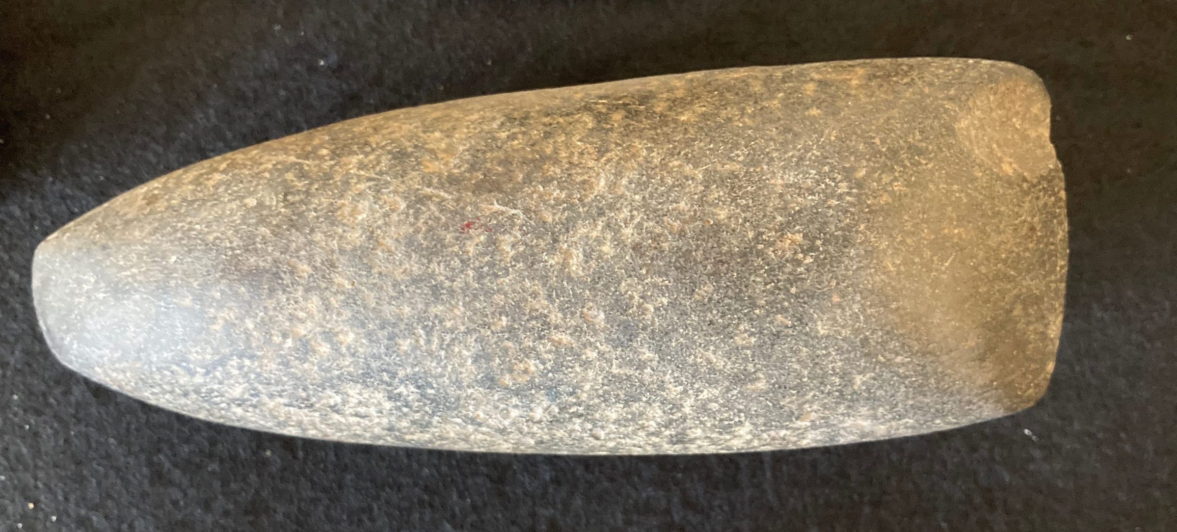 ground or slightly grooved, Ax-like implement shaped by grinding and it was used for cutting wood. Made in East Texas and obtained through trading.