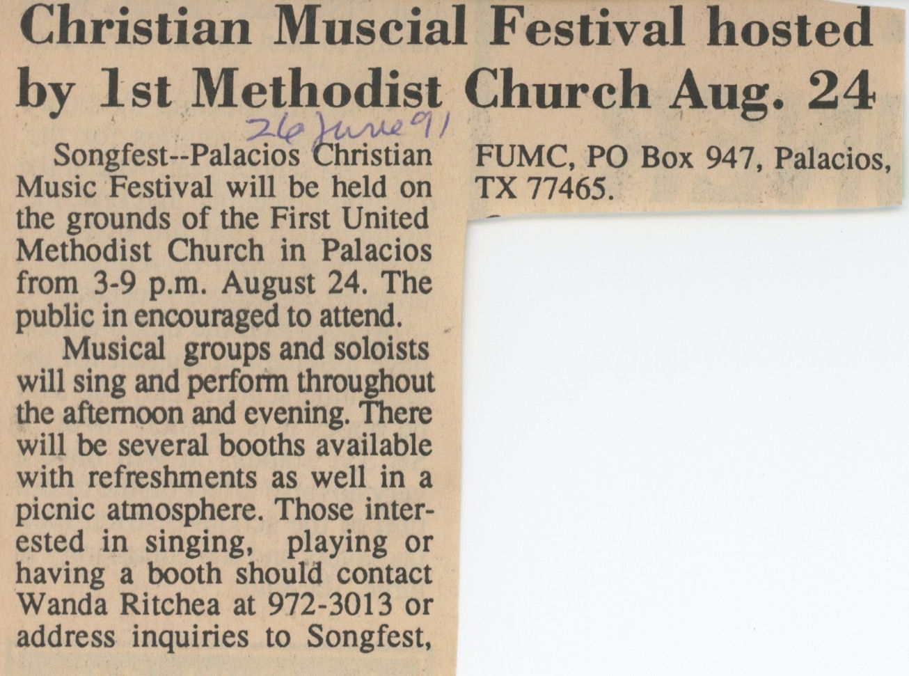 Christian Musical Festival hosted by 1st Methodist Church Aug. 24