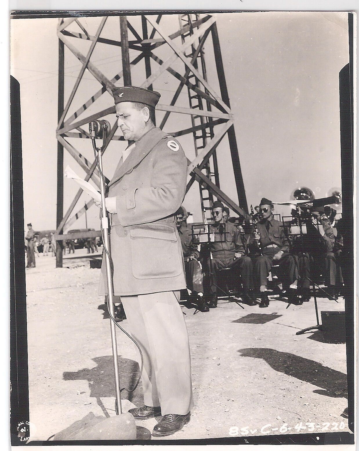 2/14/1943 Col. Maurice Morgan tells the U.S. about Camp Hulen's Anti Aircraftsmen during the NBC "Army Hour" show. Photographer, Cpl. Stanley Wilkinson.