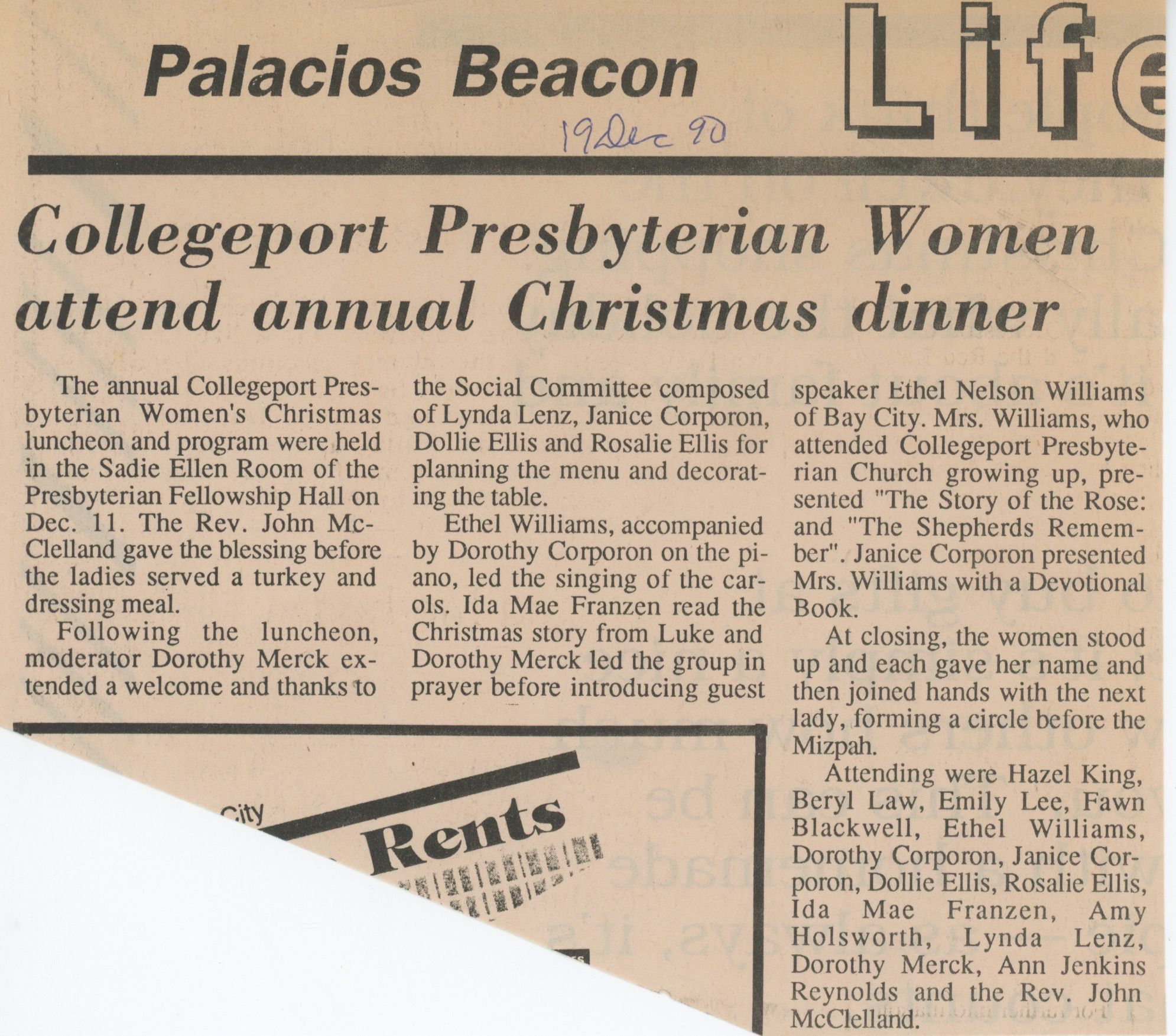 Collegeport Presbyterian Women attend annual Christmas dinner