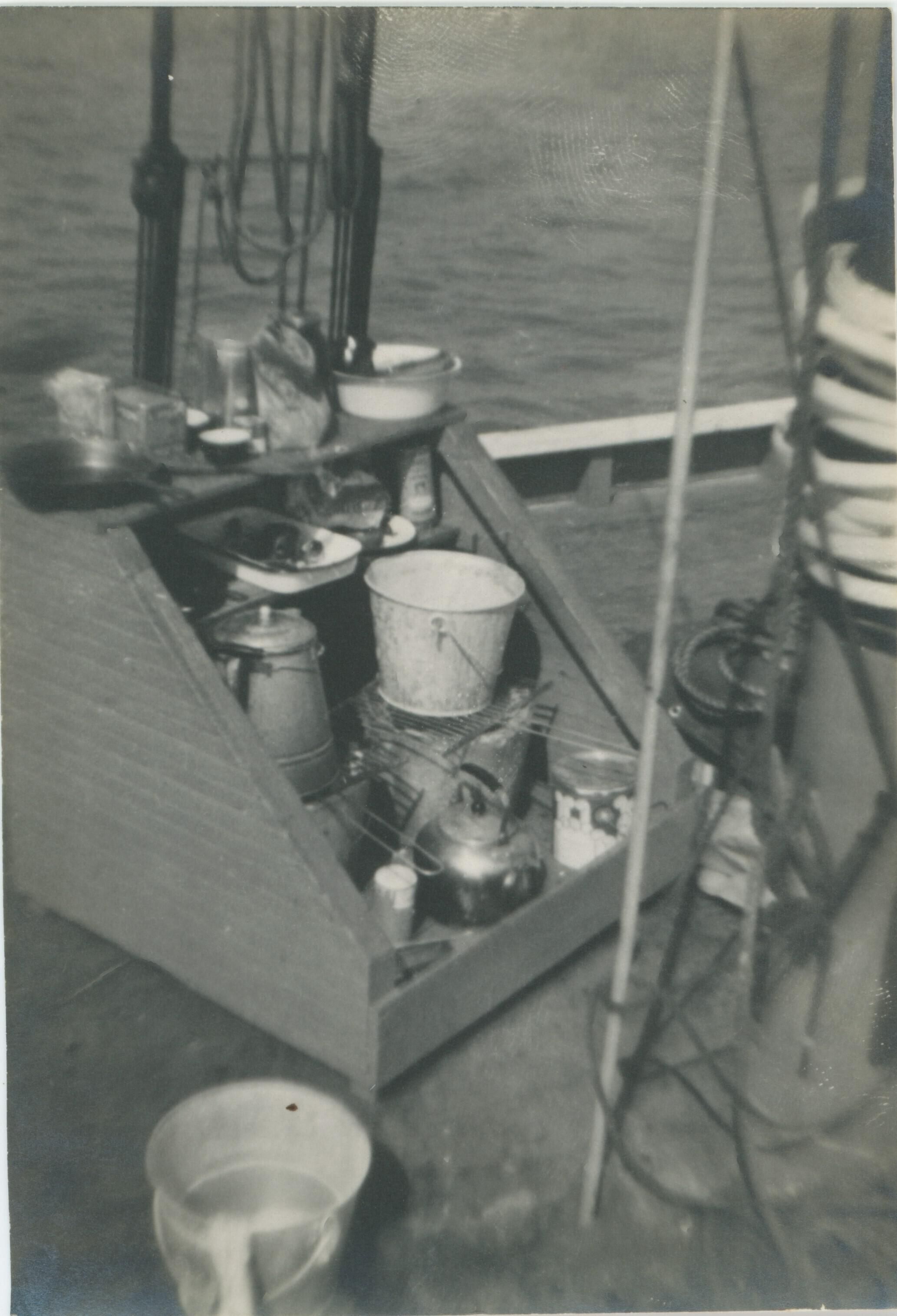 Cooking supplies on boat.