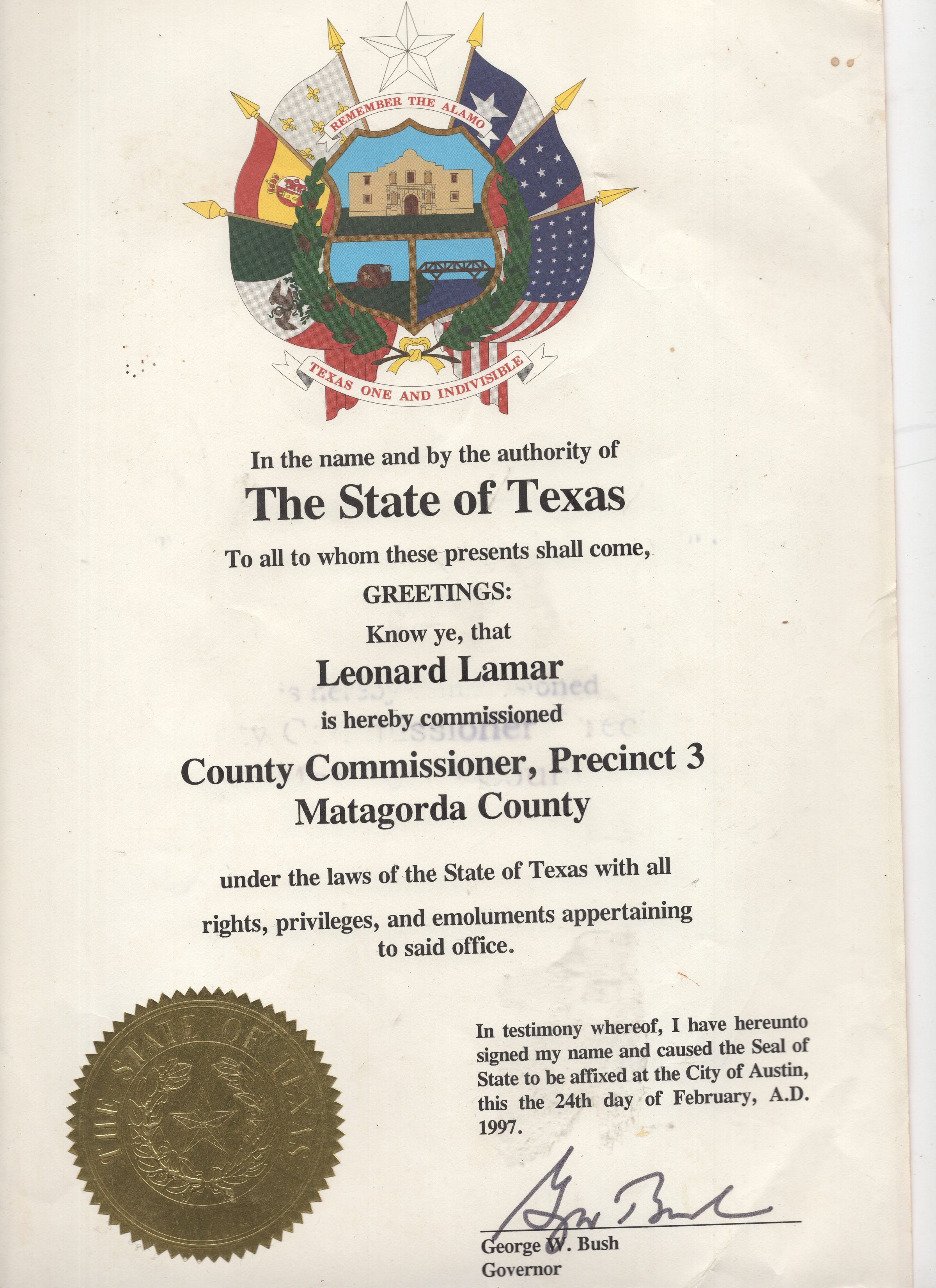 County Commissioner Leonard Lamar Document