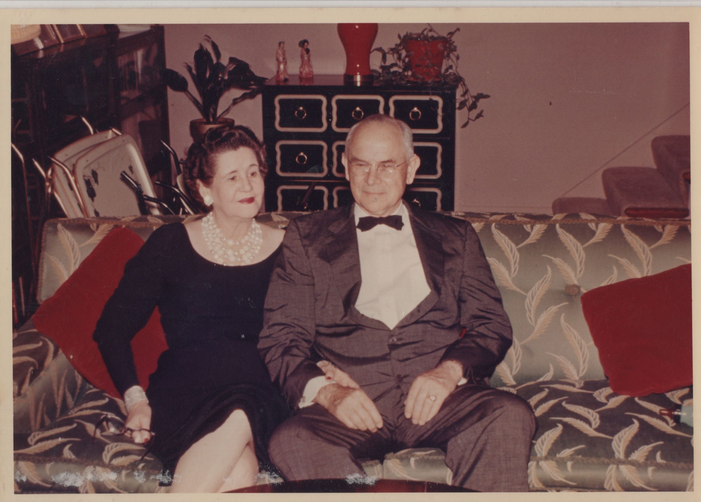 Charles and Elsie at a formal family gathering, sitting on a couch