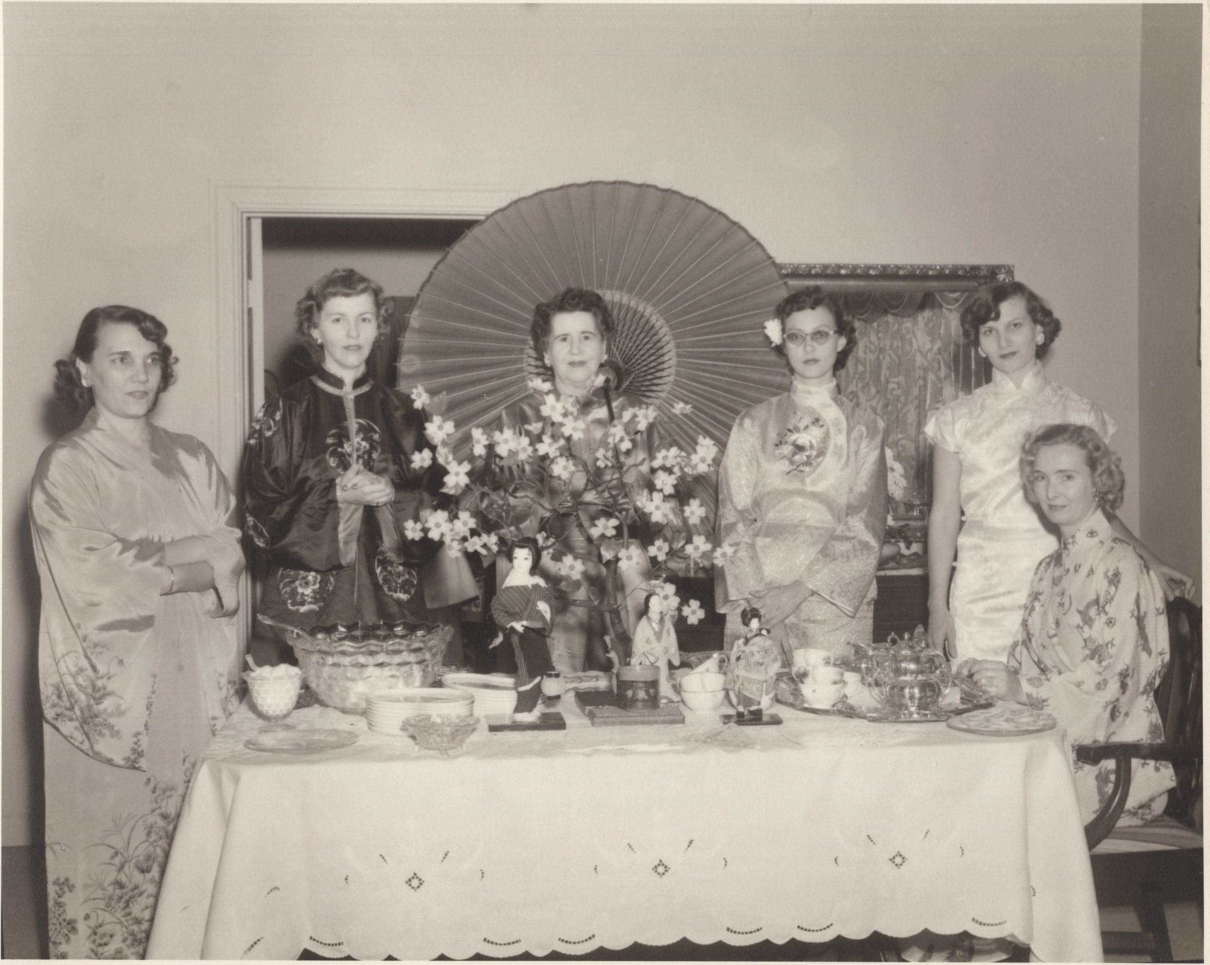 Elsie dressed up in a kimono for what appears to be a Japanese themed party