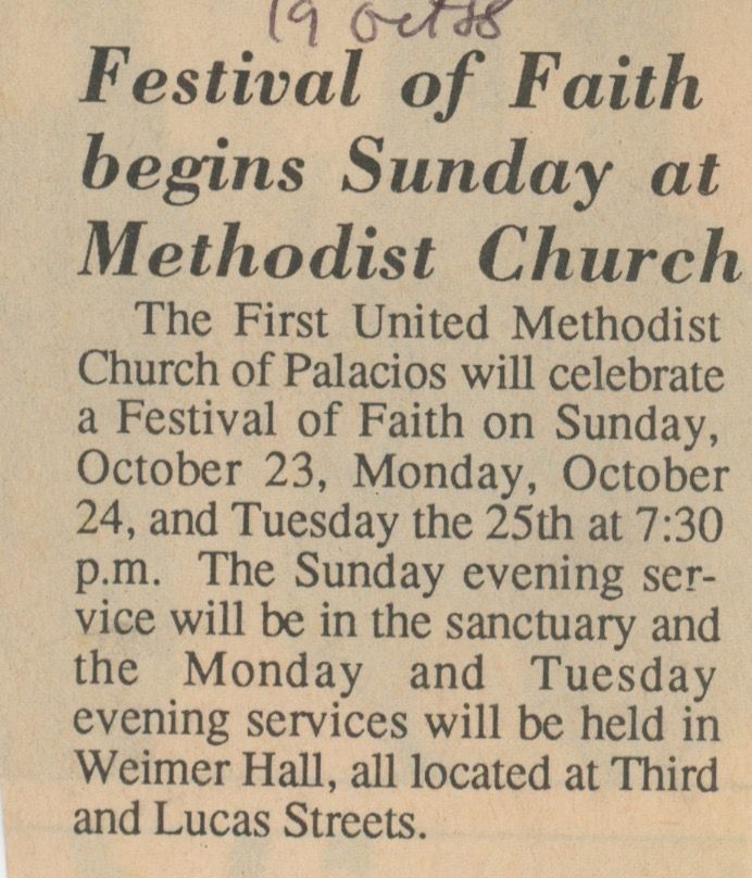 Festival of Faith begins Sunday at Methodist Church