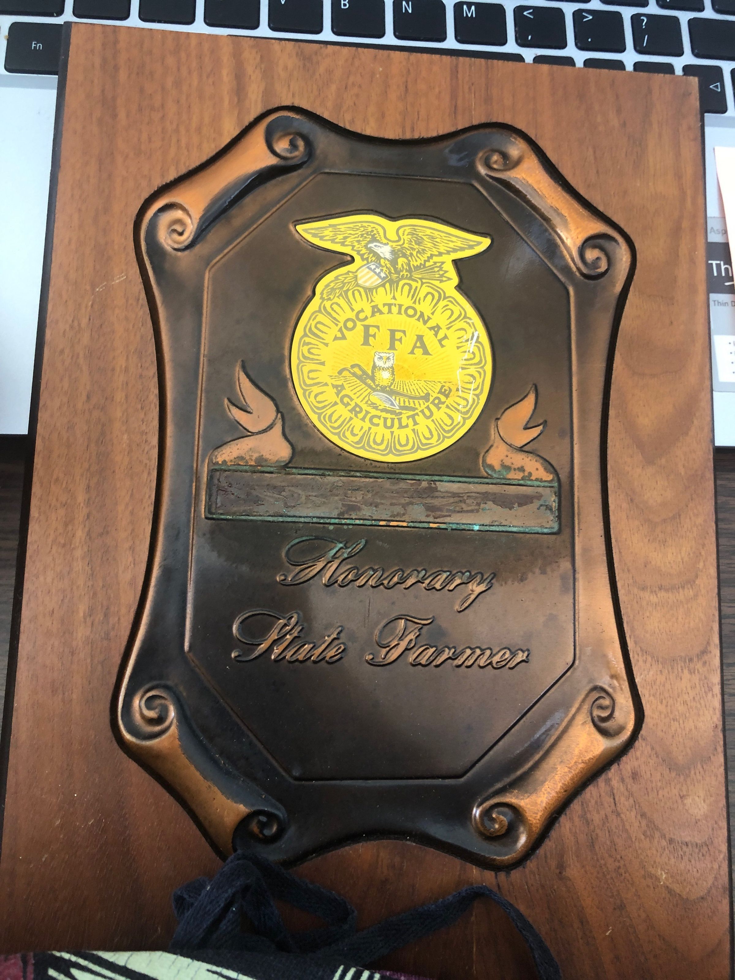Plaque awarded to an honorary farmer from PISD