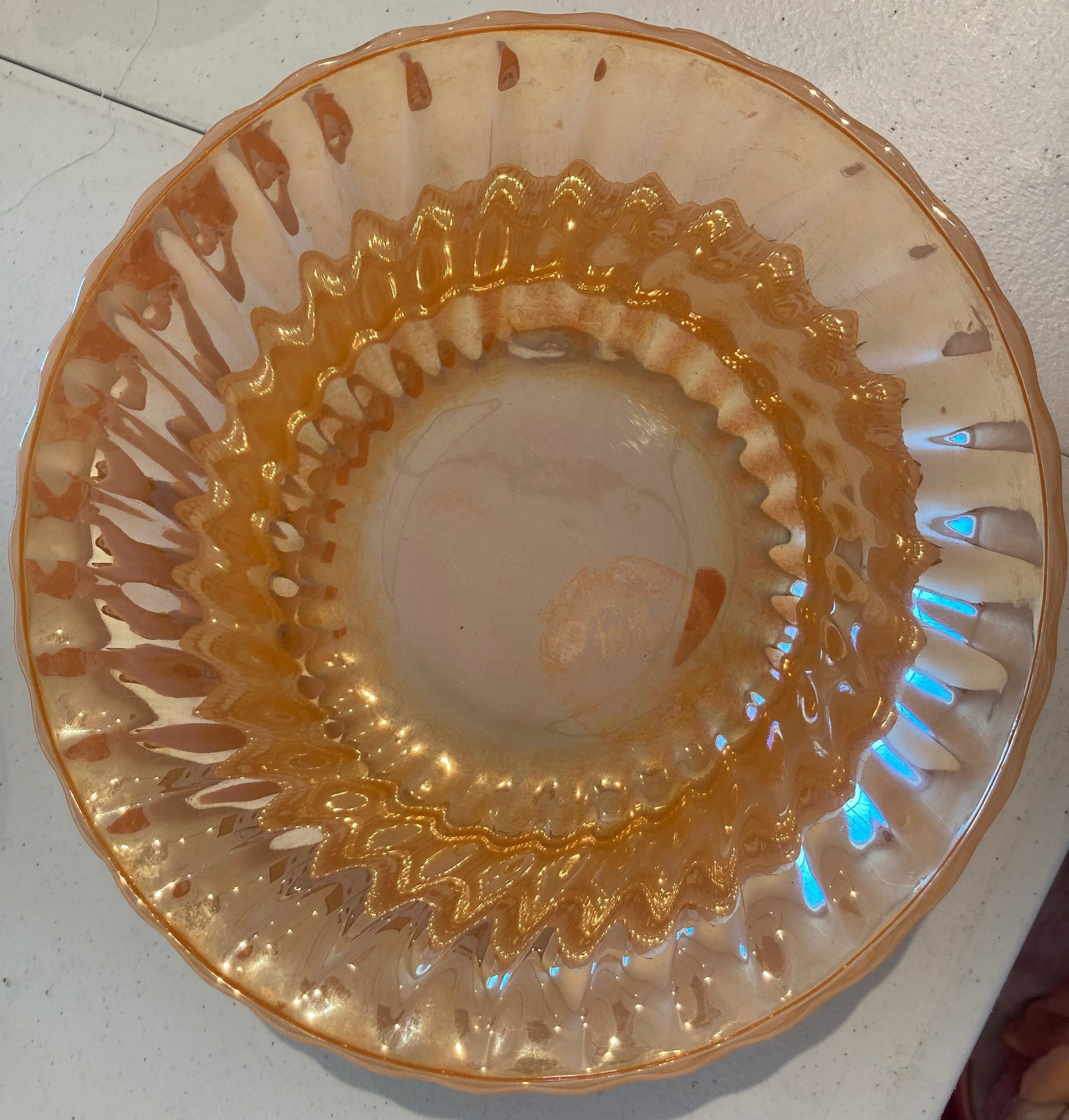 Fire King Lusterware Dinnerware, Peach Lusterware Swirl Serving Bowl.