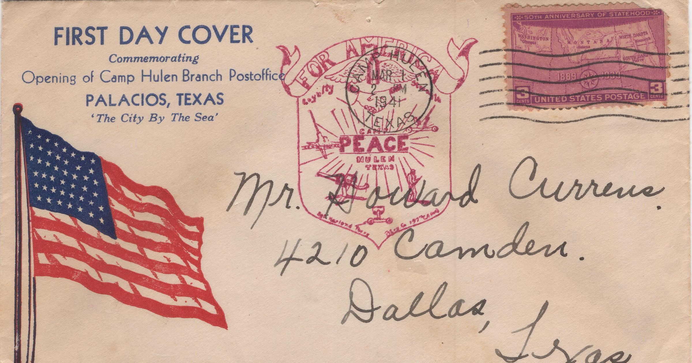 Addressed to Mr. Currens 4210 Camden Dallas, Texas
