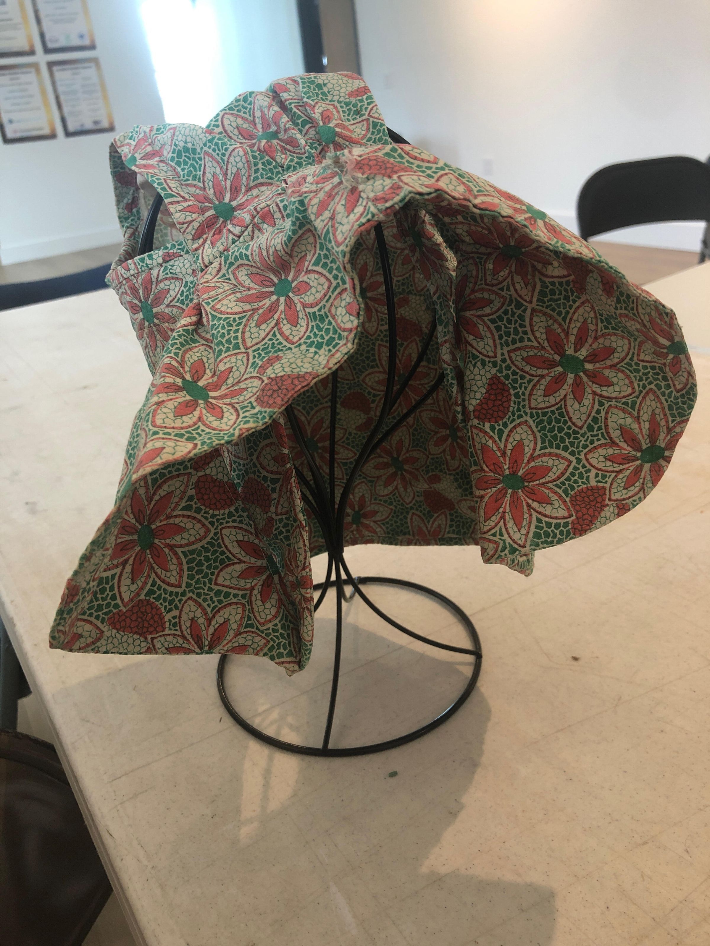 Green and pink bonnet with two cutouts on the head, could possibly be reversableCollection