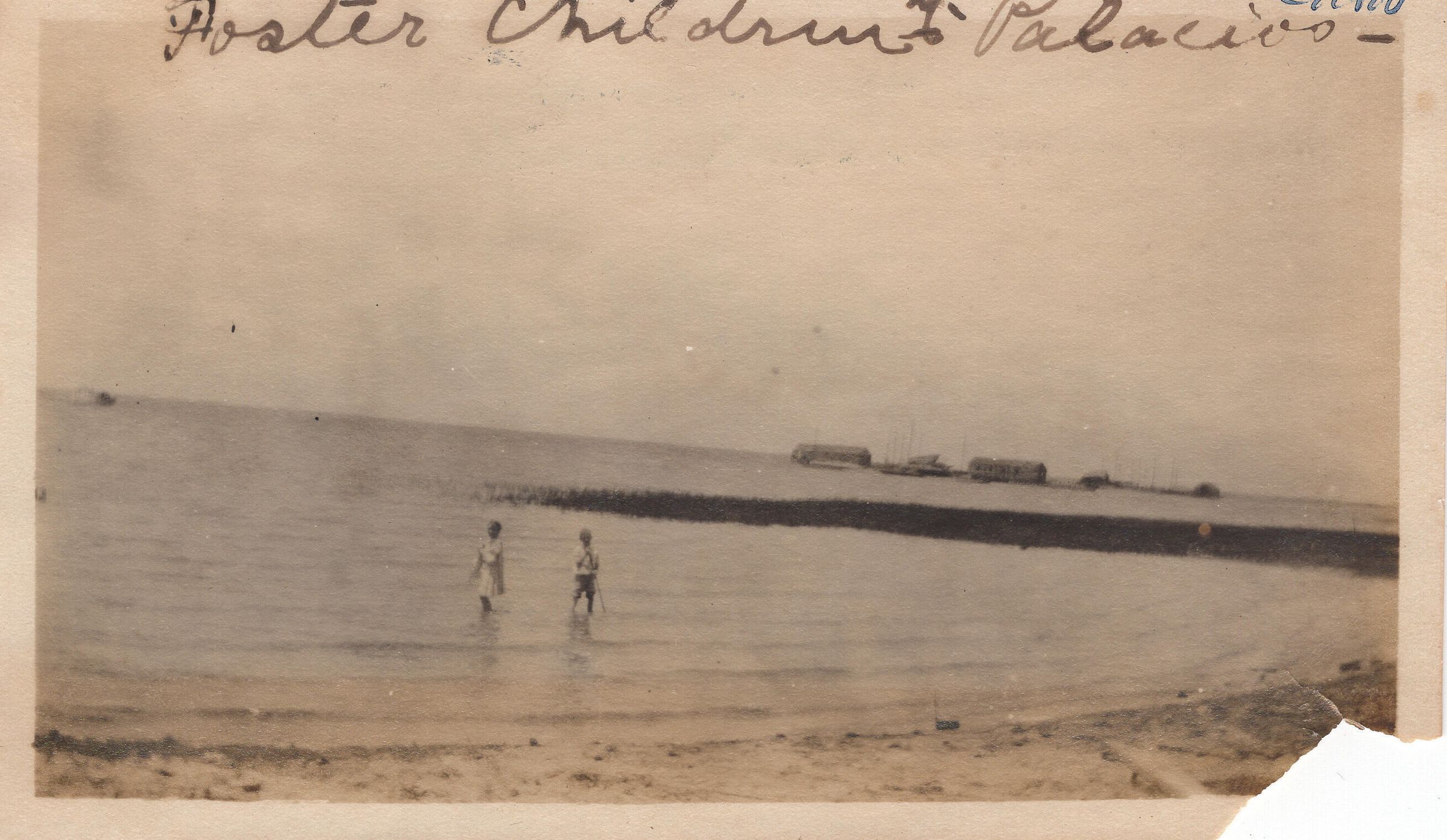 The Foster Children playing in the water in Palacios. Notice the Oyster Houses in the background.
