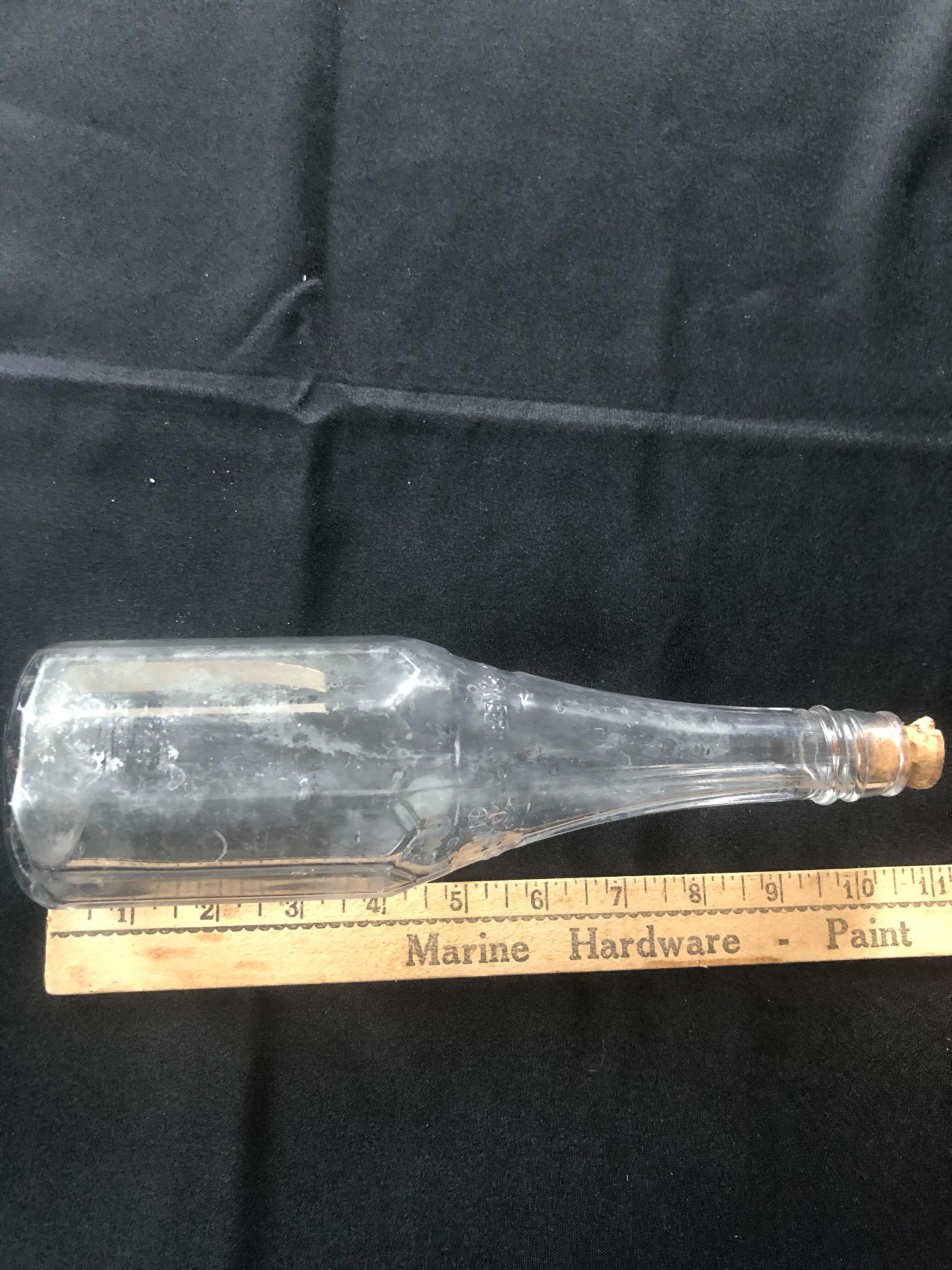 Large ketchup bottle with a cork in the opening that used to contain ketchup it reads "Sprague, Warner & Cos Catsup Bottle"